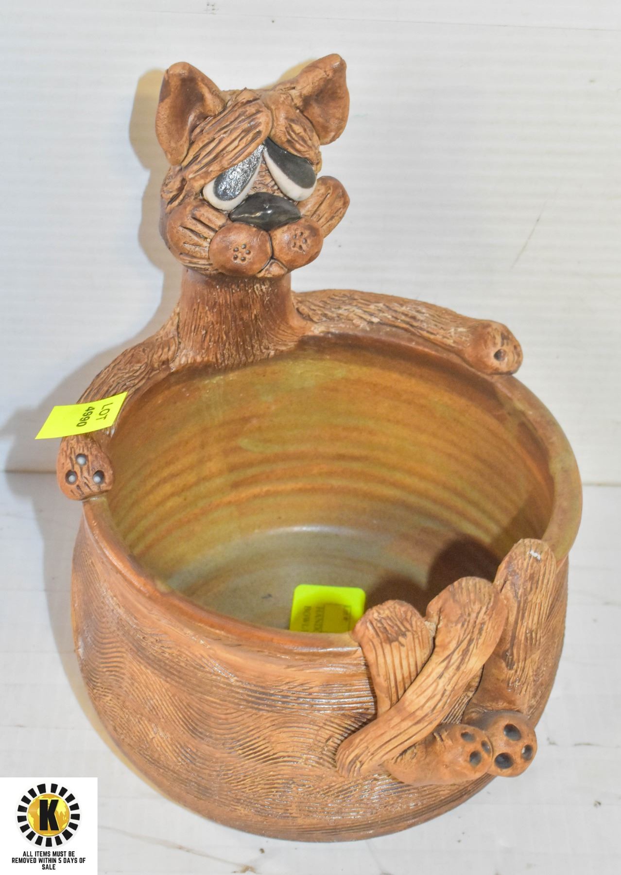 HANDCRAFTED CAT POTTERY BOWL/PLANTER
