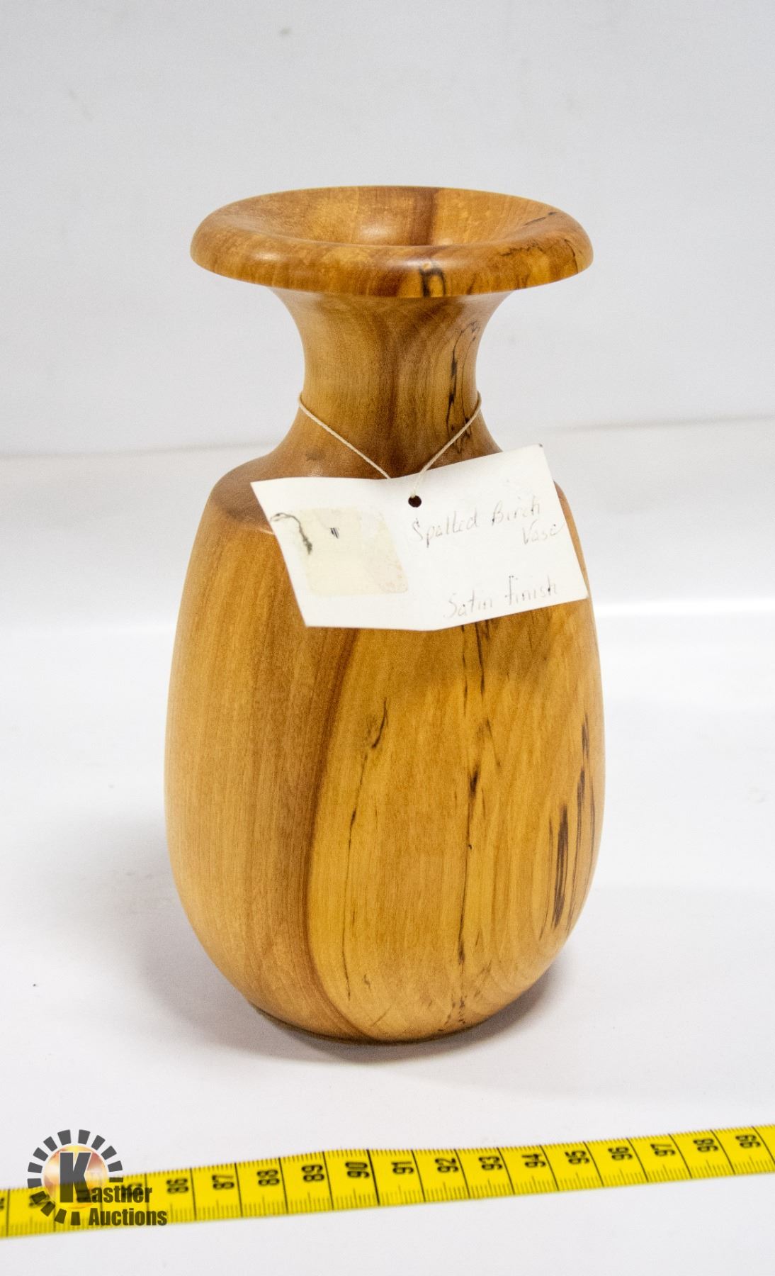 HANDCRAFTED TURNED WOOD VASE, SPOTTED BIRCH