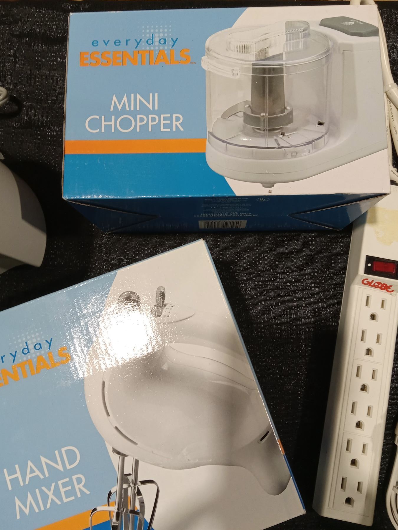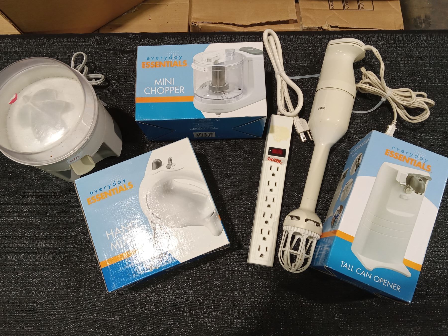 HANDHELD KITCHEN APPLICANCES(x5) 3-BOXED; 2-NO Box. -C/W 6-OUTLET EXTENSION BAR.