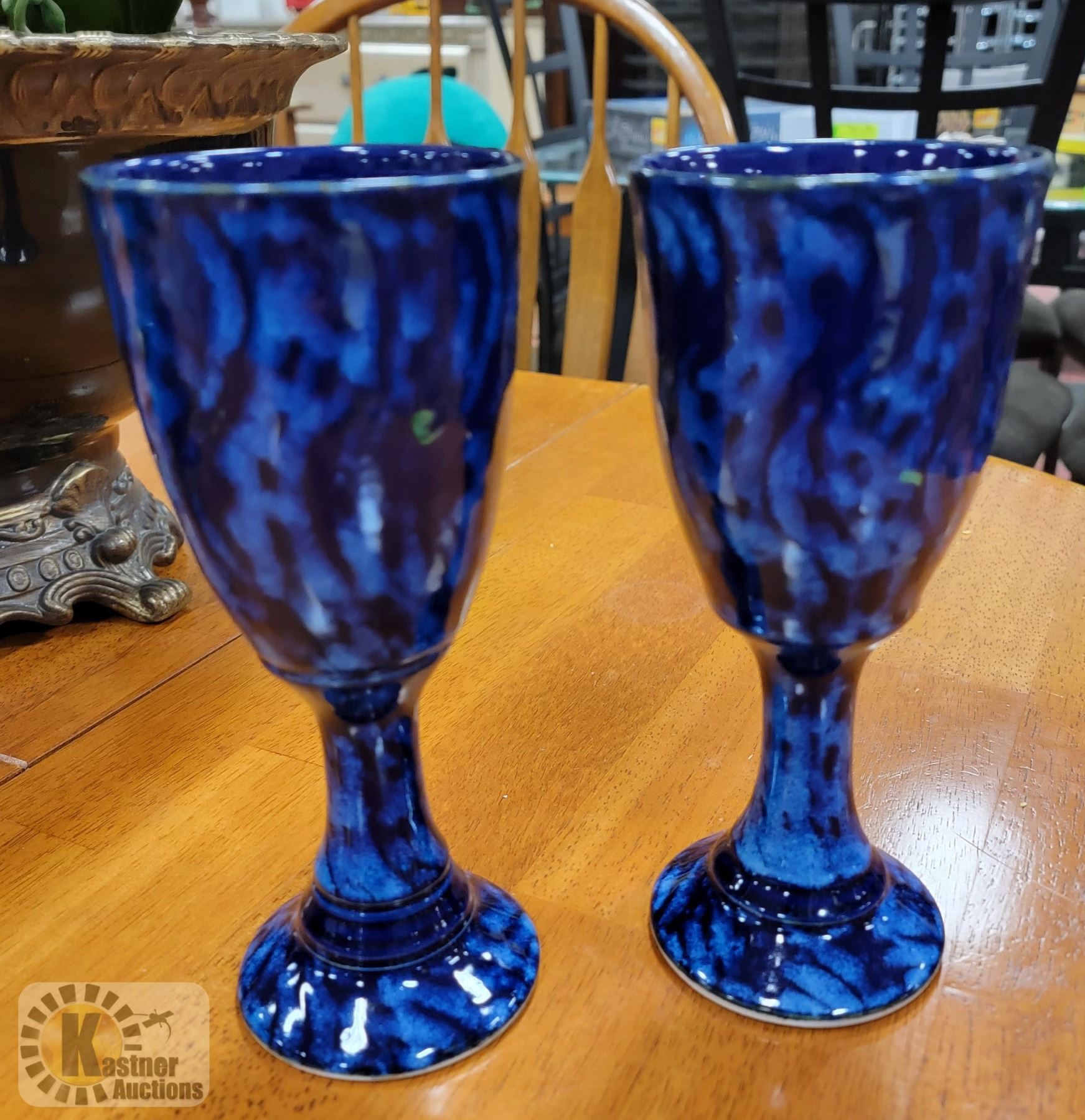 HANDMADE BLUE POTTERY GOBLETS- SIGNED BY ARTIST
