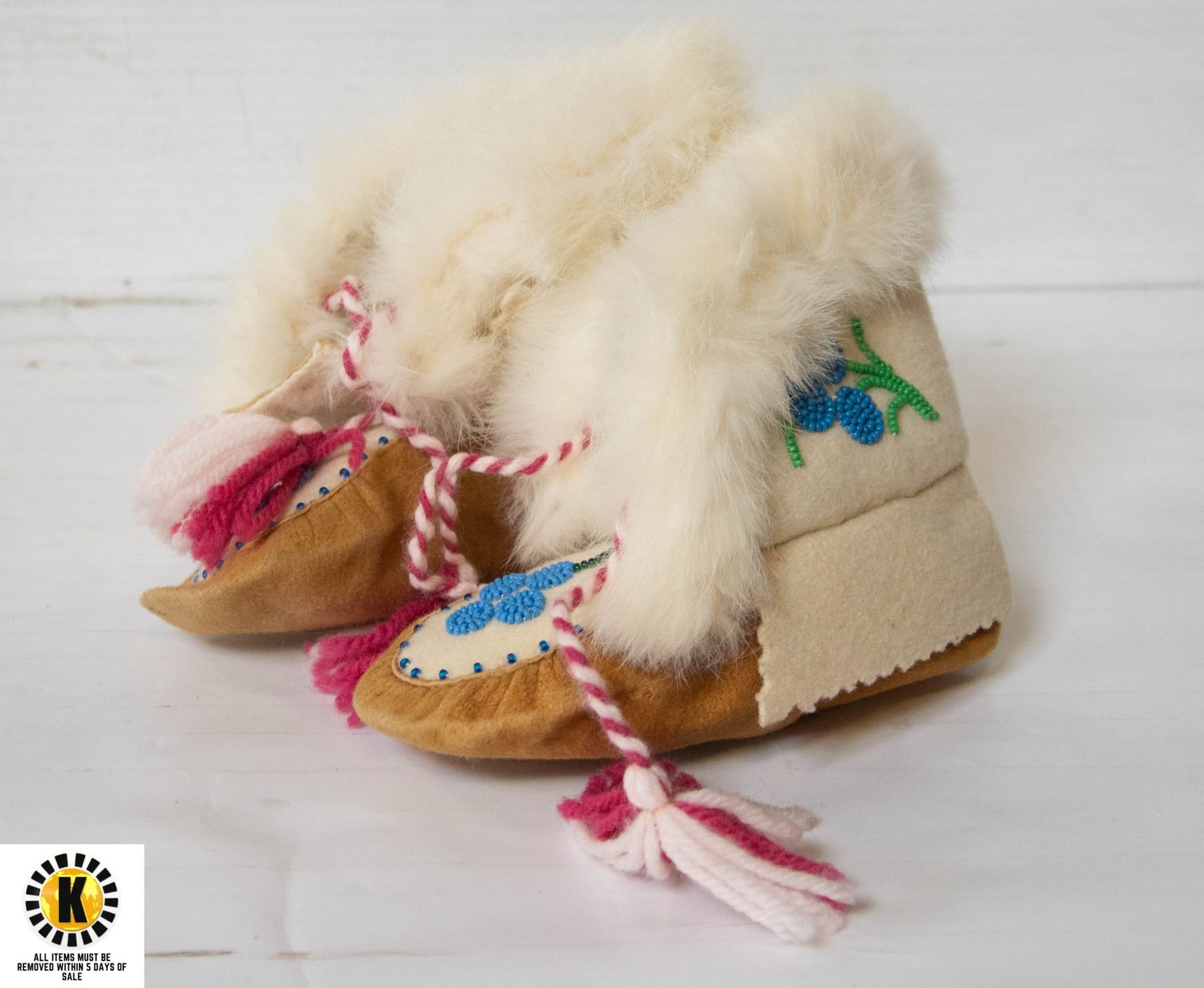 HANDMADE HIDE BEADED WRAPAROUND MUKLUKS-ESTATE