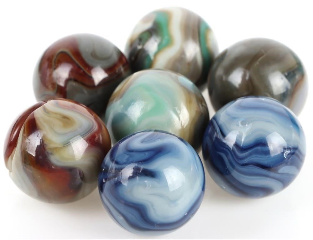 Handmade multi-colored agate stone marbles 1.0& quot; lot of 7. Marbles feature blue, green, red, yellow and purple hues.