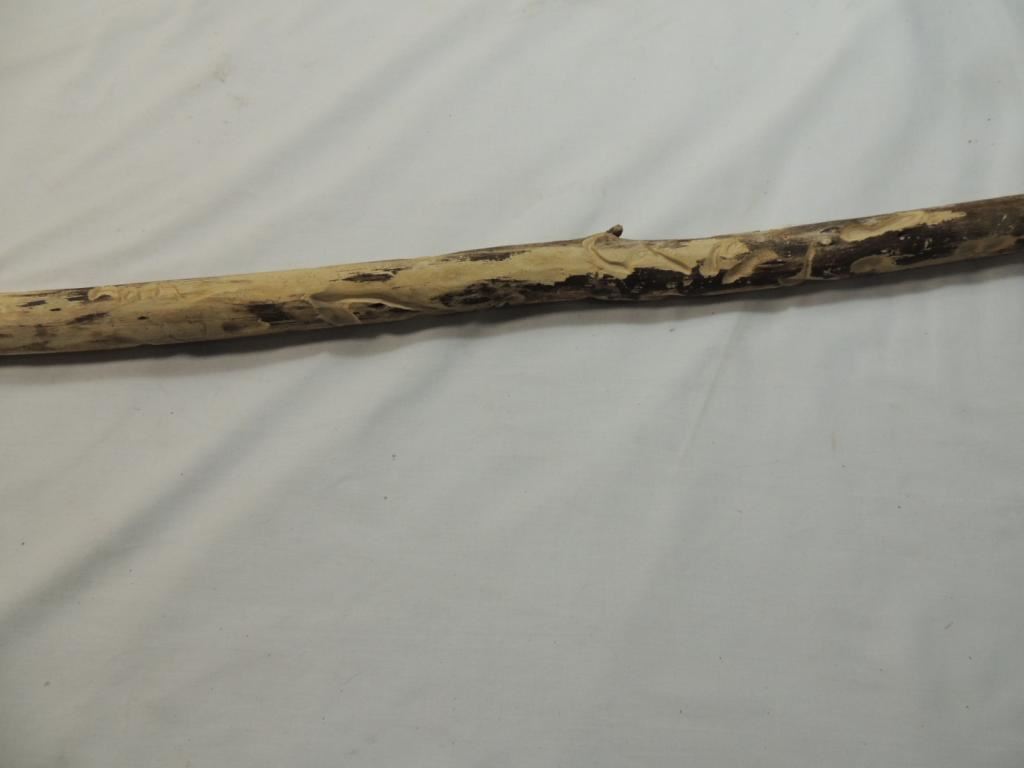 WOODEN CARVED, STAINED BURNED WALKING STICK DECORATIVE WOOD WALKING STICK AS SHWON SEE PHOTO FOR MORE DETAILS