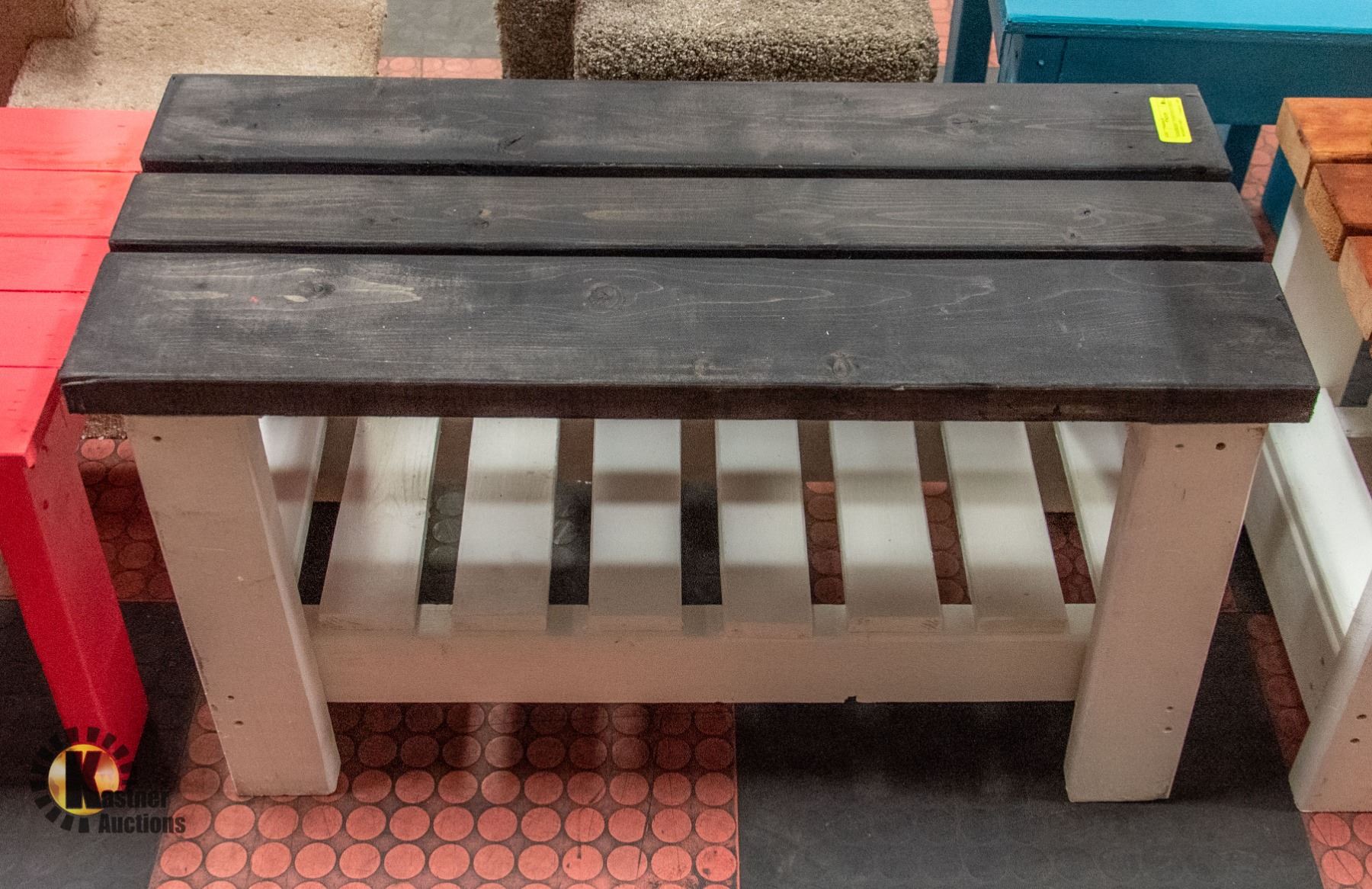 CAN BE USED A STOOL/SEAT BLACK & WHITE H-19.25" W-15" L-34" **ALL ITEMS MUST BE REMOVED BY 5PM SATURDAY, FEBRUARY 24TH 2024. ALL REMAINING ITEMS WILL BE SUBJECT TO A $6.00 PER DAY STORAGE CHARGE. ANY ITEMS REMAINING AFTER MONDAY, MARCH 11TH, 2023 WILL BE CONSIDERED FORFEITED. NO REFUNDS WILL BE ISSUED FOR FORFEITED ITEMS. TO SCHEDULE A PICK UP APPOINTMENT CLICK HERE