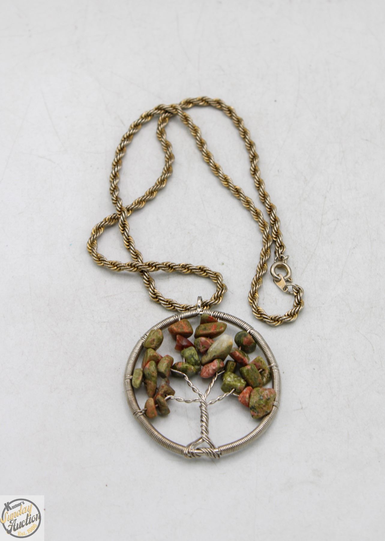 HANDMADE ROCK TREE PENDANT ON SILVER/GOLD TONE