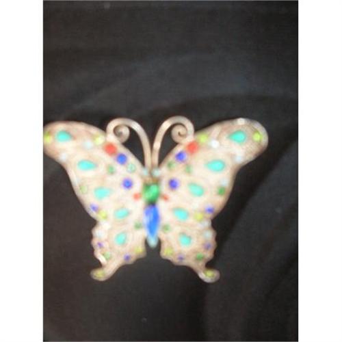 <tr><td>Title:HANDMADE SILVER (MARKED) ENAMEL BUTTERFLY</td></tr>