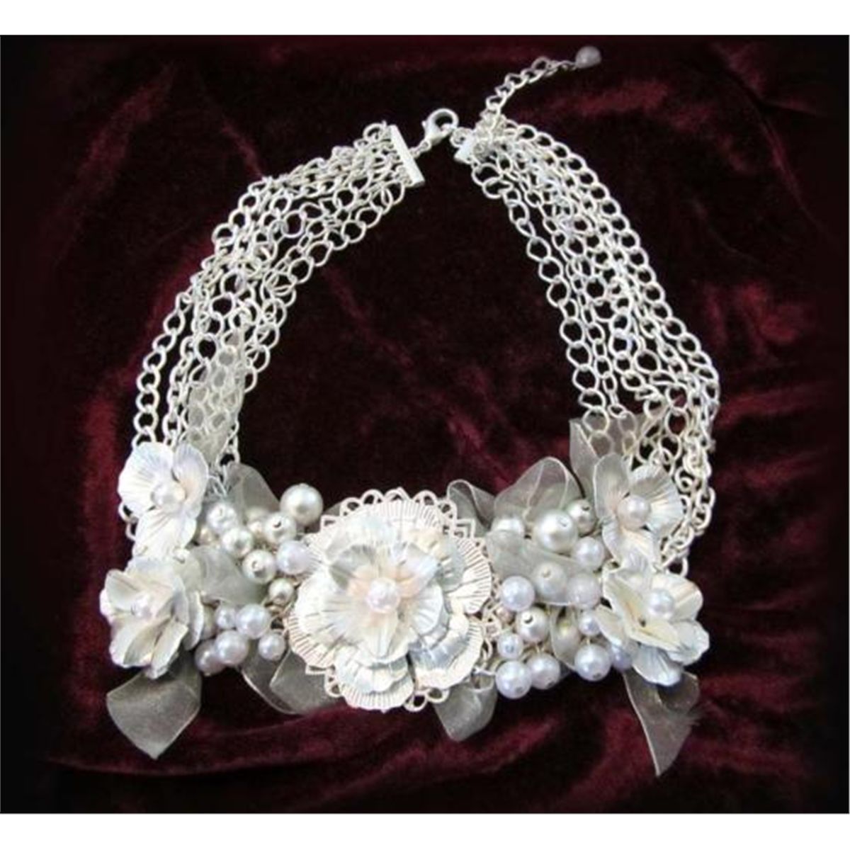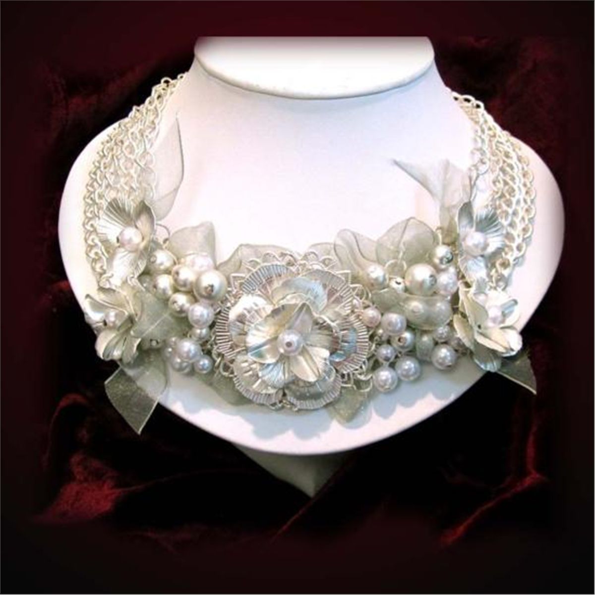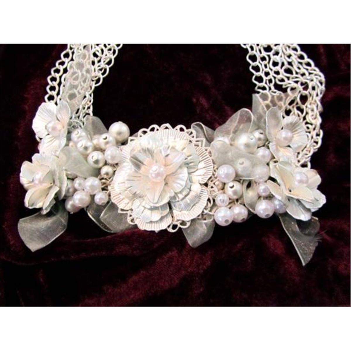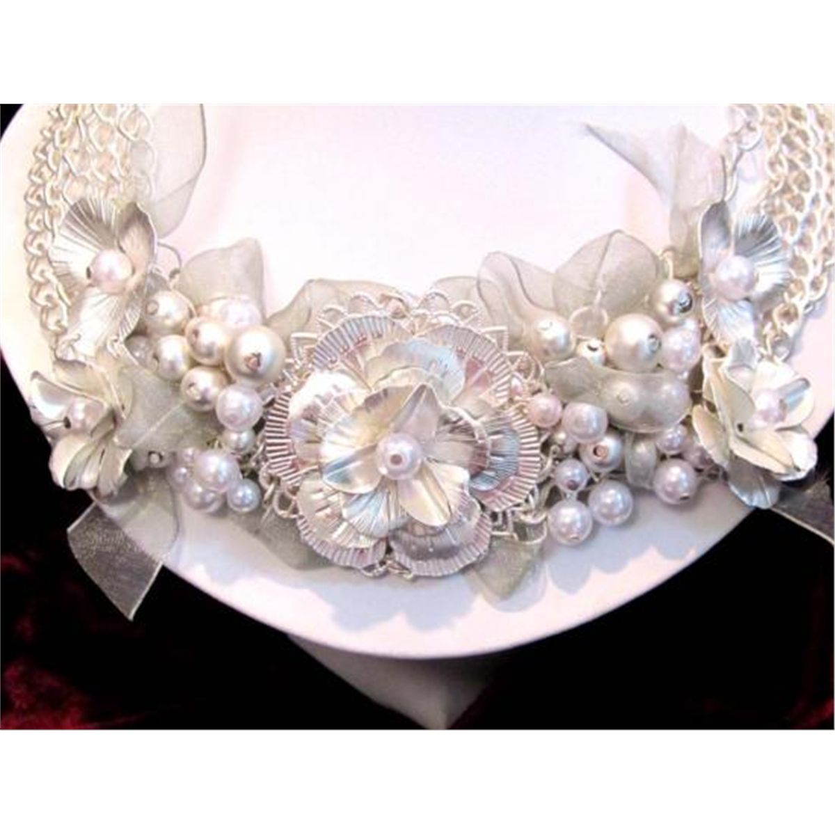HANDMADE VICTORIAN OOAK PEARL AND RIBBON BIB NECKLACE AND EARRINGS MWF1100