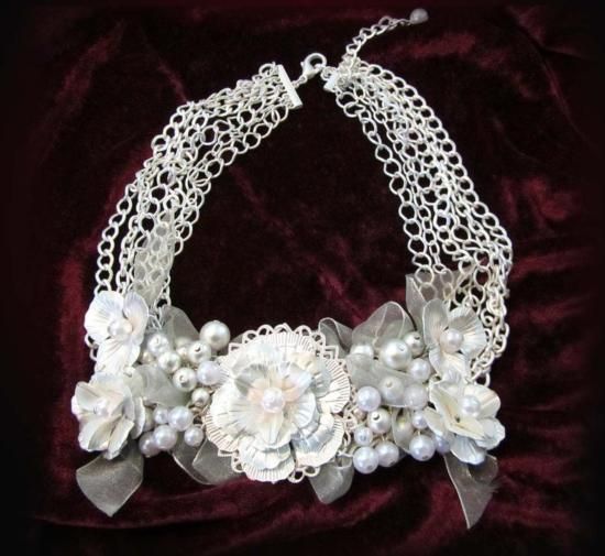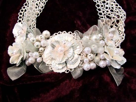 HANDMADE VICTORIAN OOAK PEARL AND RIBBON BIB NECKLACE AND EARRINGS MWF1100