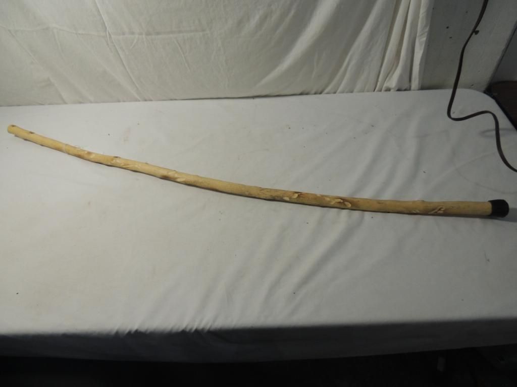 DECORATIVE WALKING STICK CARVED STAINED BURNT NATRUAL AS SHOWN SEE PHOTO FOR MORE DETAILS.