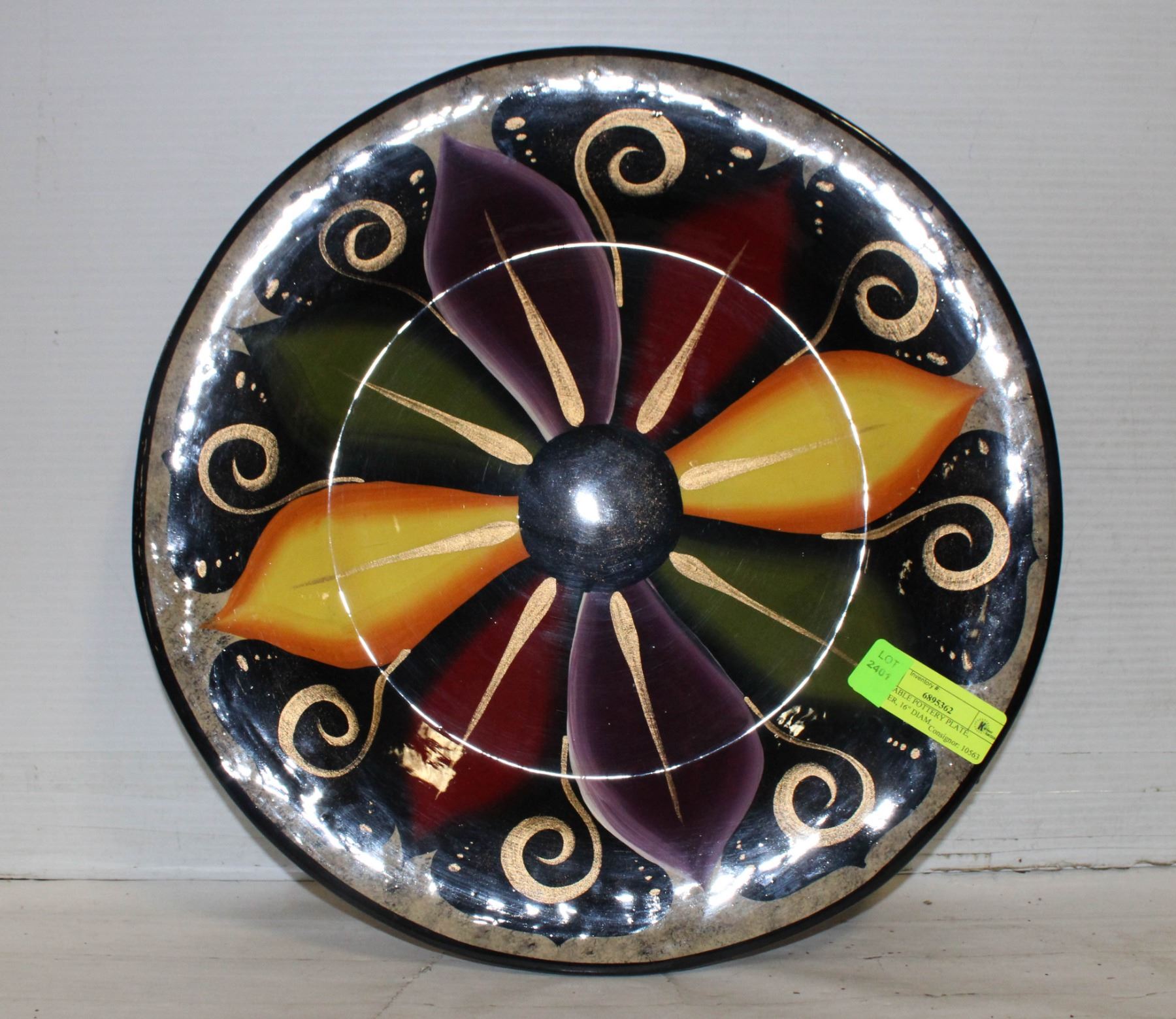 HANGABLE POTTERY PLATE, FLOWER, 16" DIAM.
