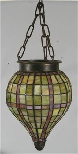 HANGING LEADED GLASS HALL LAMP, 14" high excl