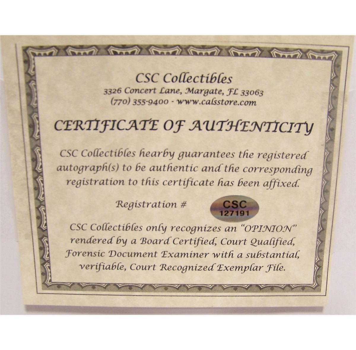 SIGNED PICTURE COMES WITH A CERTIFICATE OF AUTHENTICITY, and are guaranteed by C.S.C to be 100% AUTHENTIC. Registration #127191.