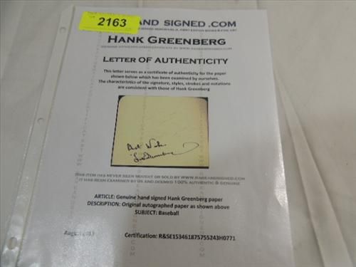 HANK GREENBERG CUT SIGNATURE AUTOGRAPH. NO COA. AS SHOWN. VIEW PICTURE FOR DETAIL.