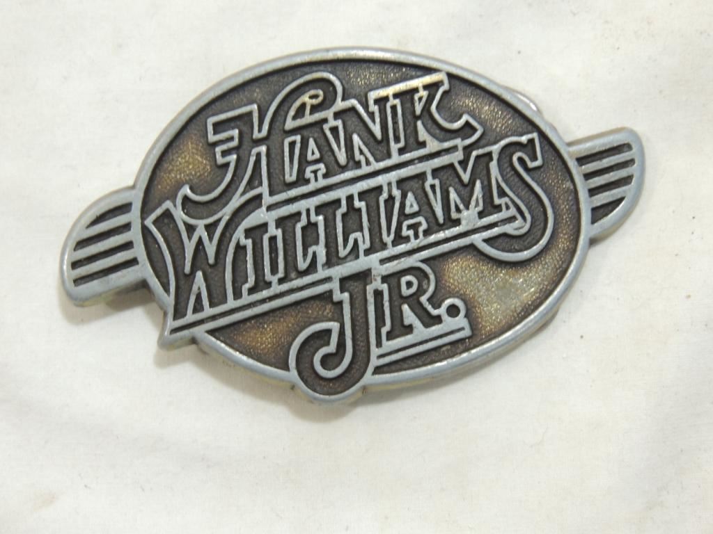 HANK WILLIAMS JR BELT BUCKLE, FAN CLUB BELT BUCKLE, COUNTRY BELT BUCKLE, COLLECTIBLE AS SHOWN SEE PHOTO FOR MORE DETAILS.