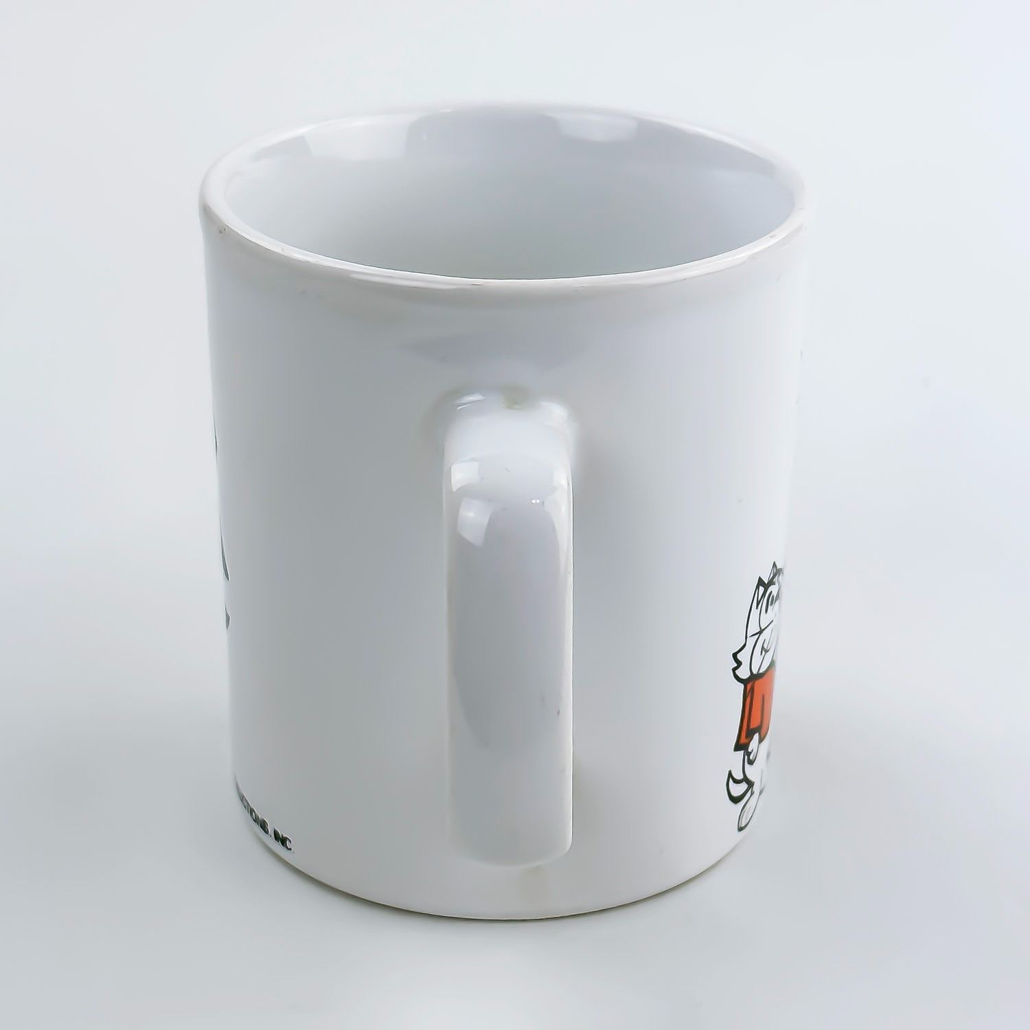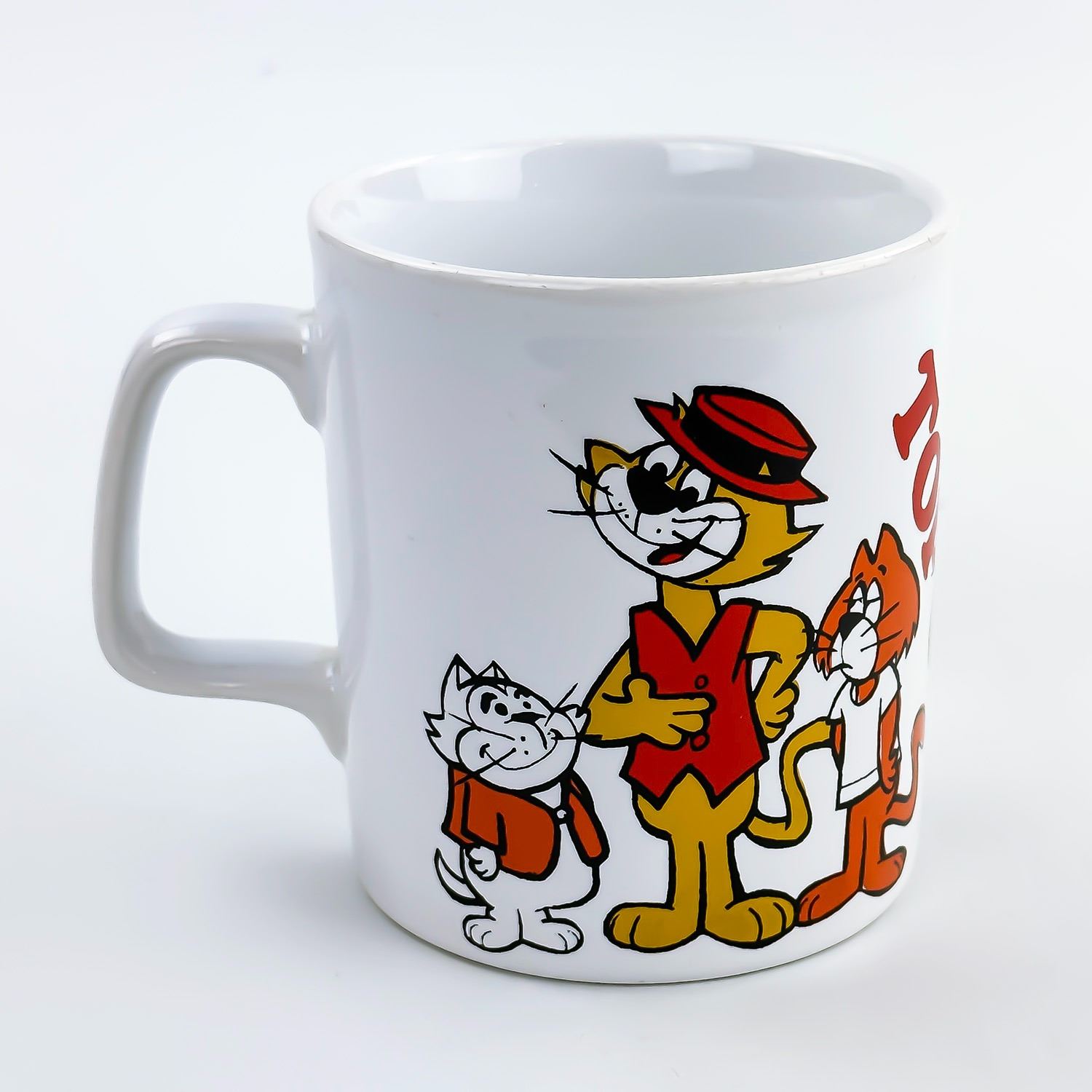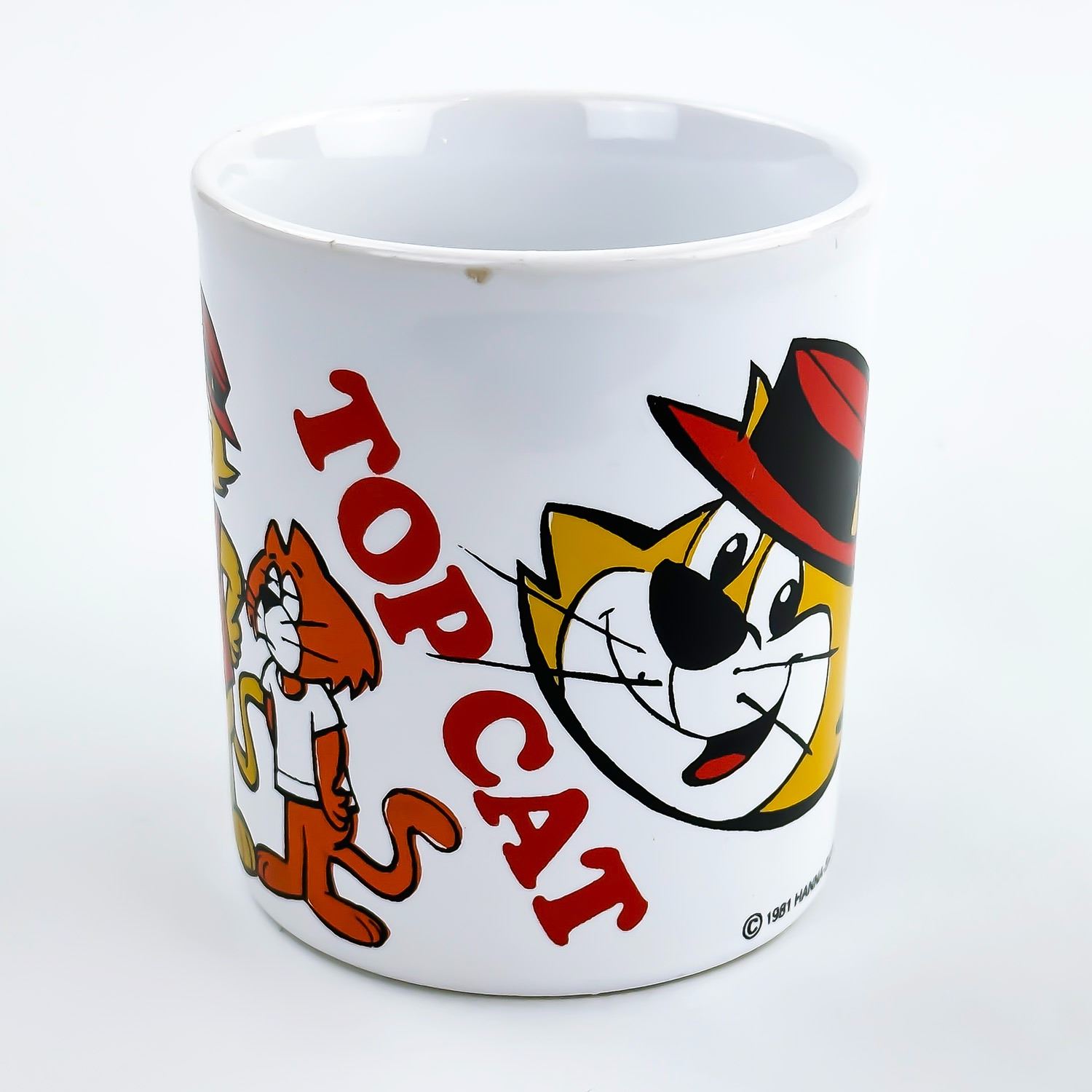 #8539 - VINTAGE TOP CAT CARTOON MUG - 1981 HANNA-BARBERA PRODUCTIONS INC. MADE BY KILN KRAFT STAFFORDSHIRE, ENGLAND. MEASURES: 3.5” (9 CM) TALL BY 4.25” (11 CM) WIDE - INCLUDES HANDLE AND 3” (7.5 CM) TOP DIAMETER