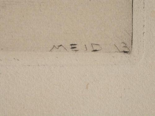 This etching is Signed "Meid" in the plate in the lower right corner, as well as dated in the plate '13 (1913) next to the signature.