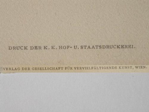 It was printed for "Vervielfaltigende Kunst" in Wien, Austria by "Verlag der Gesellschaft" probably in the 20's.