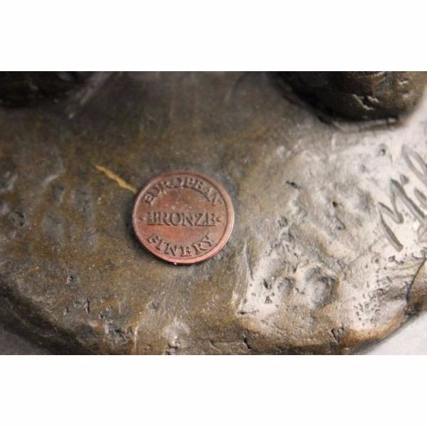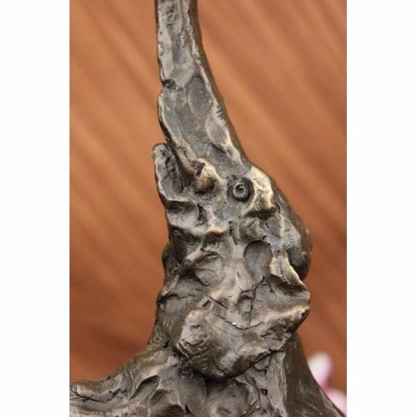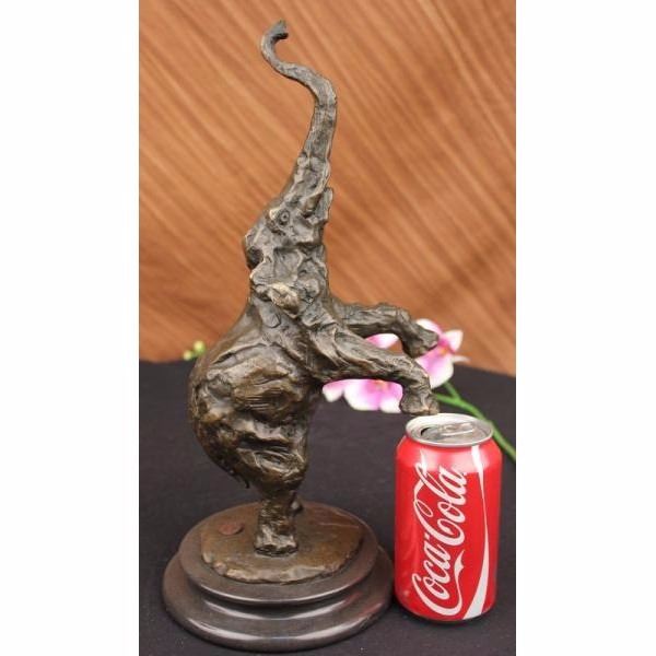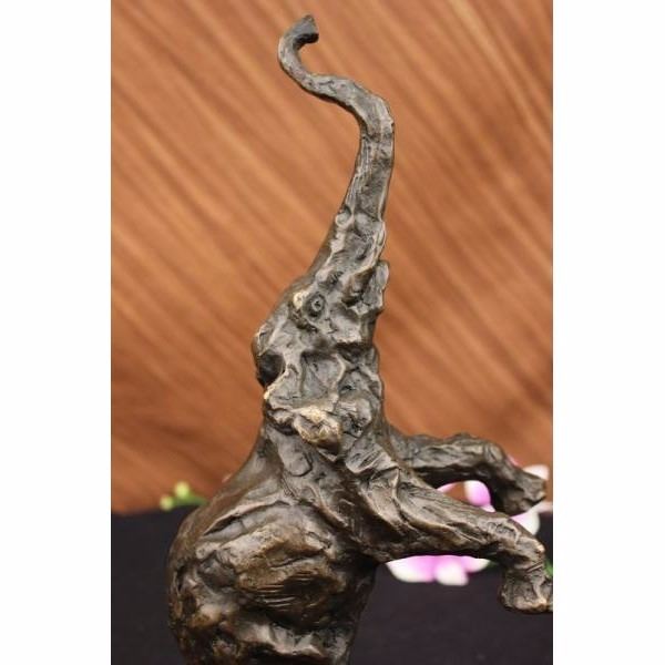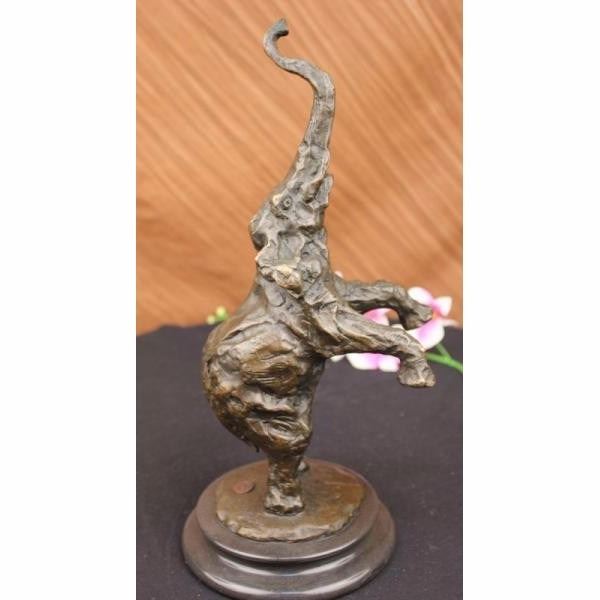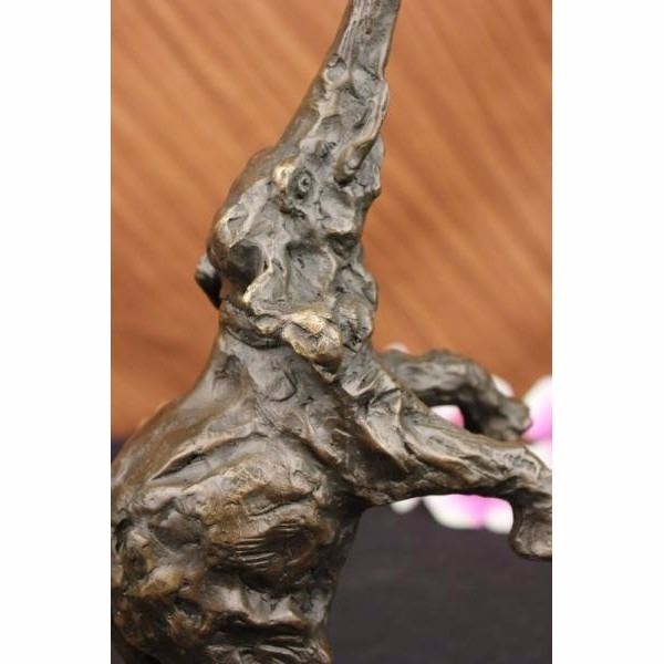 This Male elephant plunges his trunk right into the water and starts bathing him in a cooling coat water and mud. He sucks water up with his trunk to spray it on himself and to also grab a drink to quench his thirst. This sculpture has great detail and captures this amazing animal in its natural environment. This bronze sculpture was cast using the Lost Wax Method and has a brown patina. It is mounted on a marble base and signed by the artist Milo World famous sculptor "Milo" is the artistic partner of the Lynn Forbes School of Sculptureand is offering an exclusive signature in the wax of every piece of his items, which are Custom Cast with European Bronze Finery. In effect it makes EACH SCULPTURE an ORIGINAL since each one is different than the next (similar to a Limited Edition). Again, Miloour partnerIS THE ORIGINAL SCULPTOR of this incredible work of art. Milo was born in Paris in 1939; Milo lived most of his childhood in Andalusia, Spain. Influenced by an artistic family background, he began sculpting at the age of seventeen. After apprenticing with several accomplished sculptors both in America and Spain, he began his own work focusing equally on steel and bronze. Horses and other animals were a natural direction of his work to follow. As a child he was surrounded by horses and witnessing the fighting bulls of Spain gave him an instinct for the inherent drama of these animals. Combining a special cement mixture with steel has allowed him the fluidity of metal with the timelessness of stone. This process enables him to capture the essence of the animal's nature. The characteristic rough texture and movement of line make Milo work easily identifiable in both cement and bronze. Condition: This sculpture is in perfect condition. Bronze Dimensions with Marble Base:Height 15" x Width 6" Marble Dimensions: Diameter 6" Height without base: 14 " Weight : 11 LBS Inventory 6540K16456