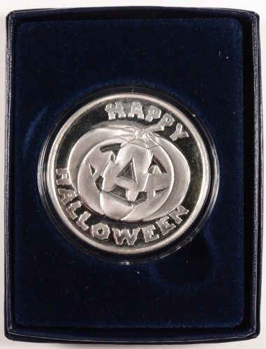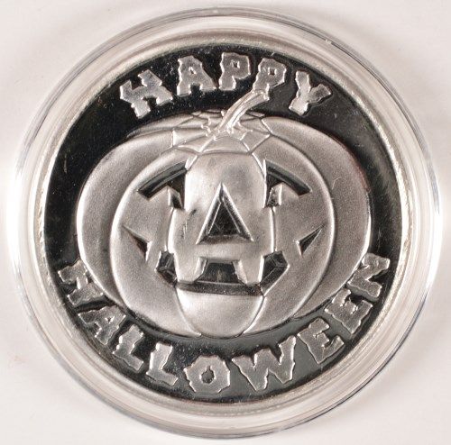"HAPPY HALLOWEEN" ONE OUNCE .999 SILVER ART ROUND, JACK O LANTERN