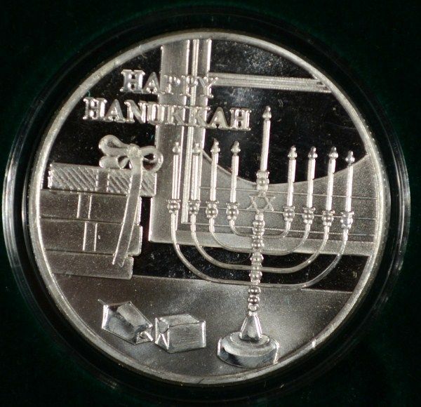 A MENORAH ON A HIGH QUALITY ART BAR WITH PLASTIC CAPSULE AND RED GIFT BOX MAKES THE PERFECT GIFT, EST. $60.00 TO $65.00