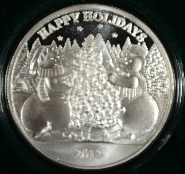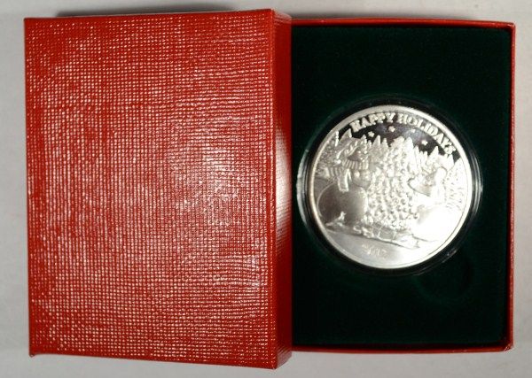 SNOWMEN DECORATING TREE ON A HIGH QUALITY ART BAR WITH PLASTIC CAPSULE AND RED GIFT BOX MAKES THE PERFECT GIFT, EST. $60.00 TO $65.00