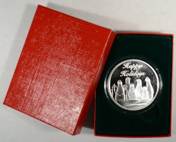 PENGUINS ON A HIGH QUALITY ART BAR WITH PLASTIC CAPSULE AND RED GIFT BOX MAKES THE PERFECT GIFT, EST. $60.00 TO $65.00