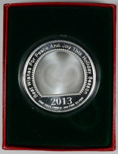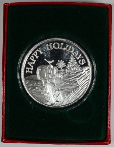 HAPPY HOLIDAYS ( WINTER SCENE ) ONE Oz .999 SILVER ART ROUND, WITH CAPSULE/BOX