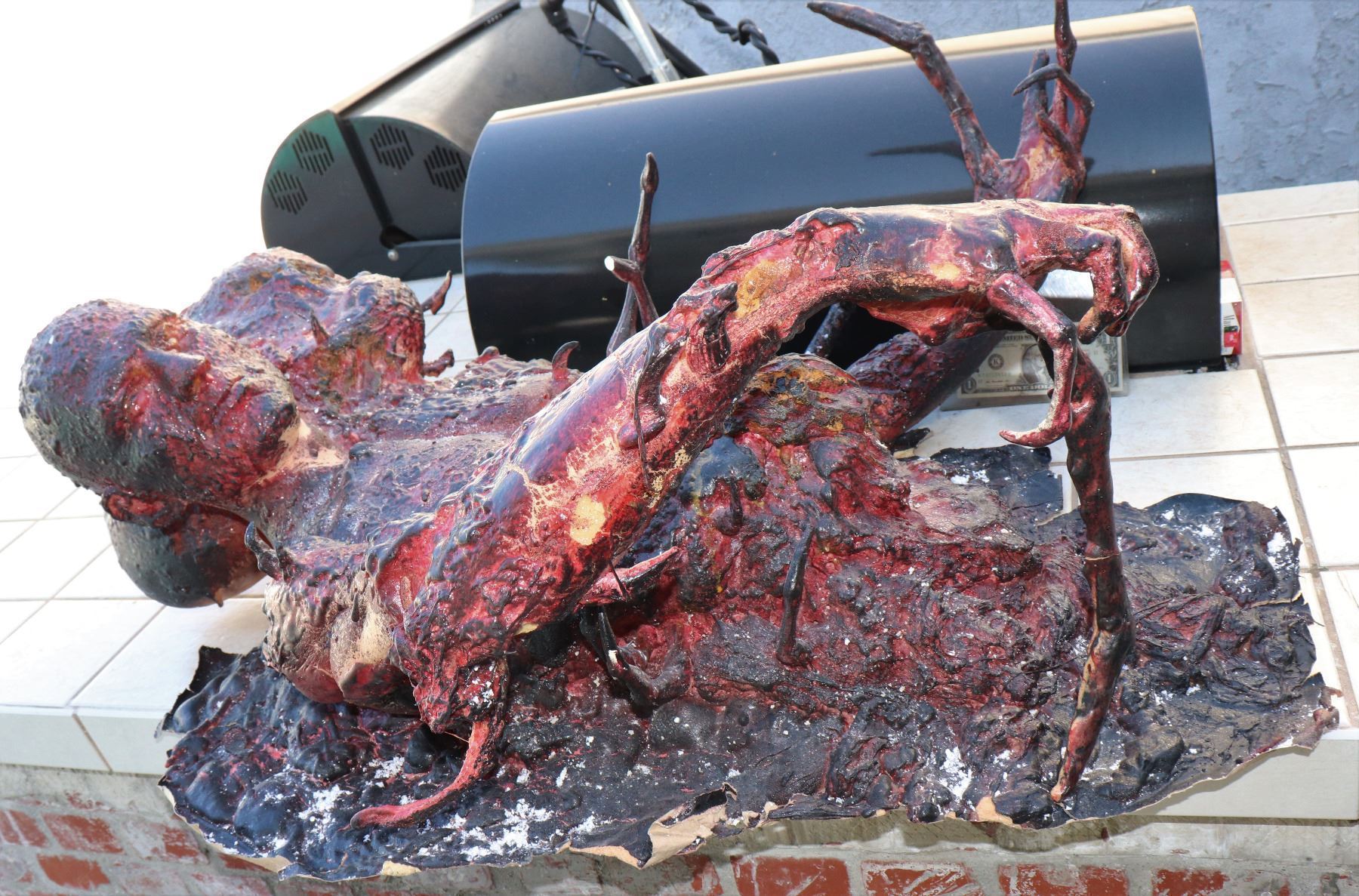 It is common knowledge that they went CGI during production of THE THING prequel, but one thing they did not CGI is burnt remains!