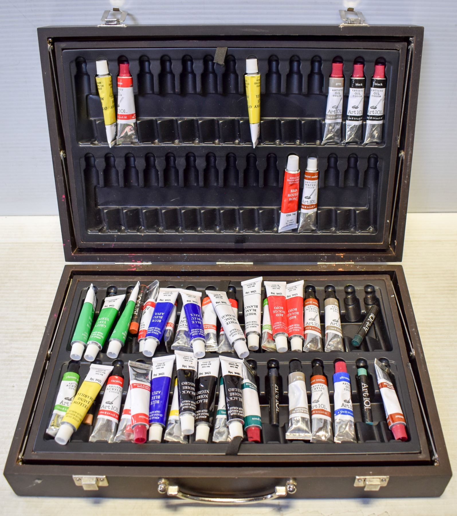 HARD CASE ART SET WITH BRUSHES, PAINTS & PASTELS