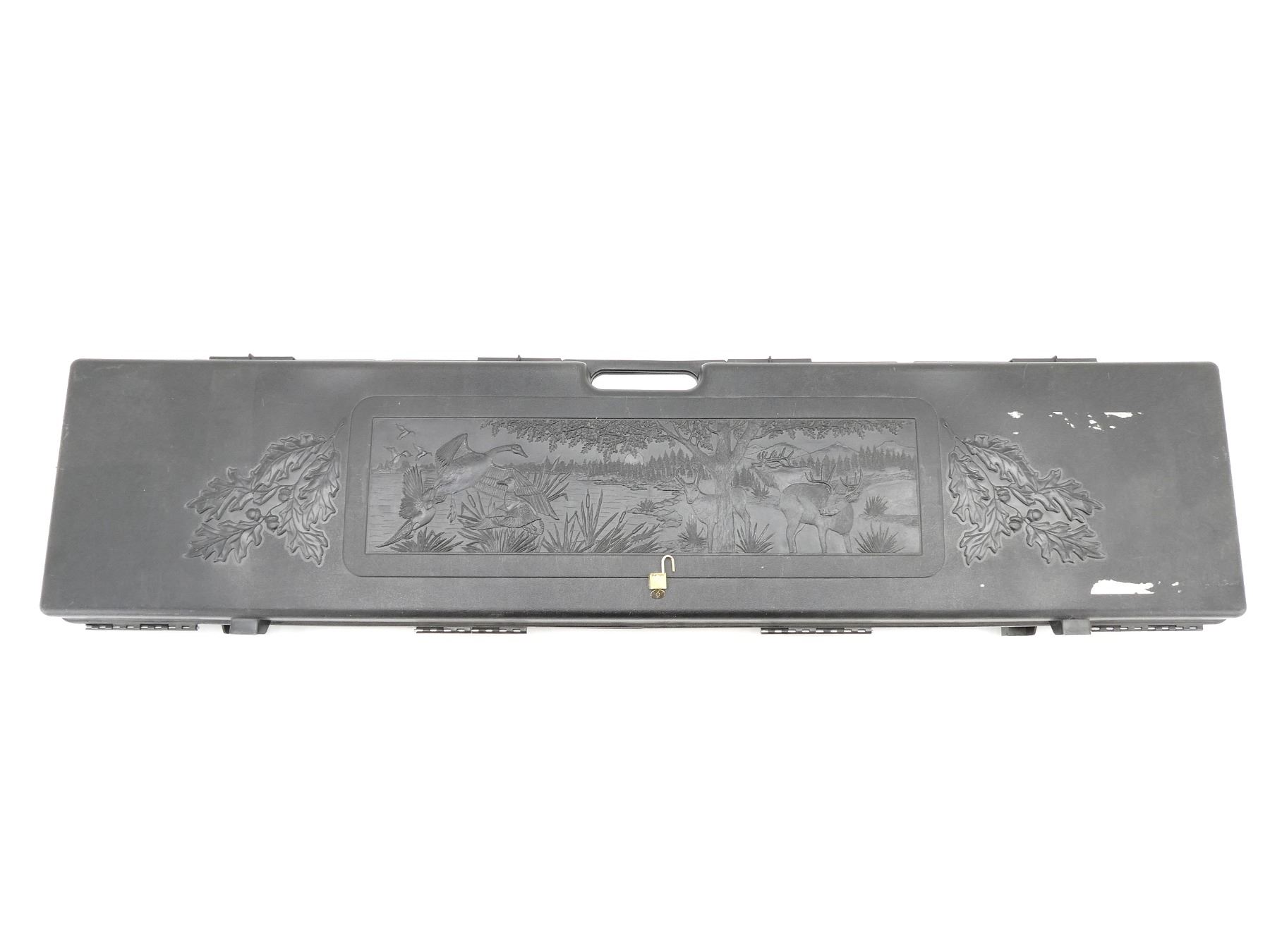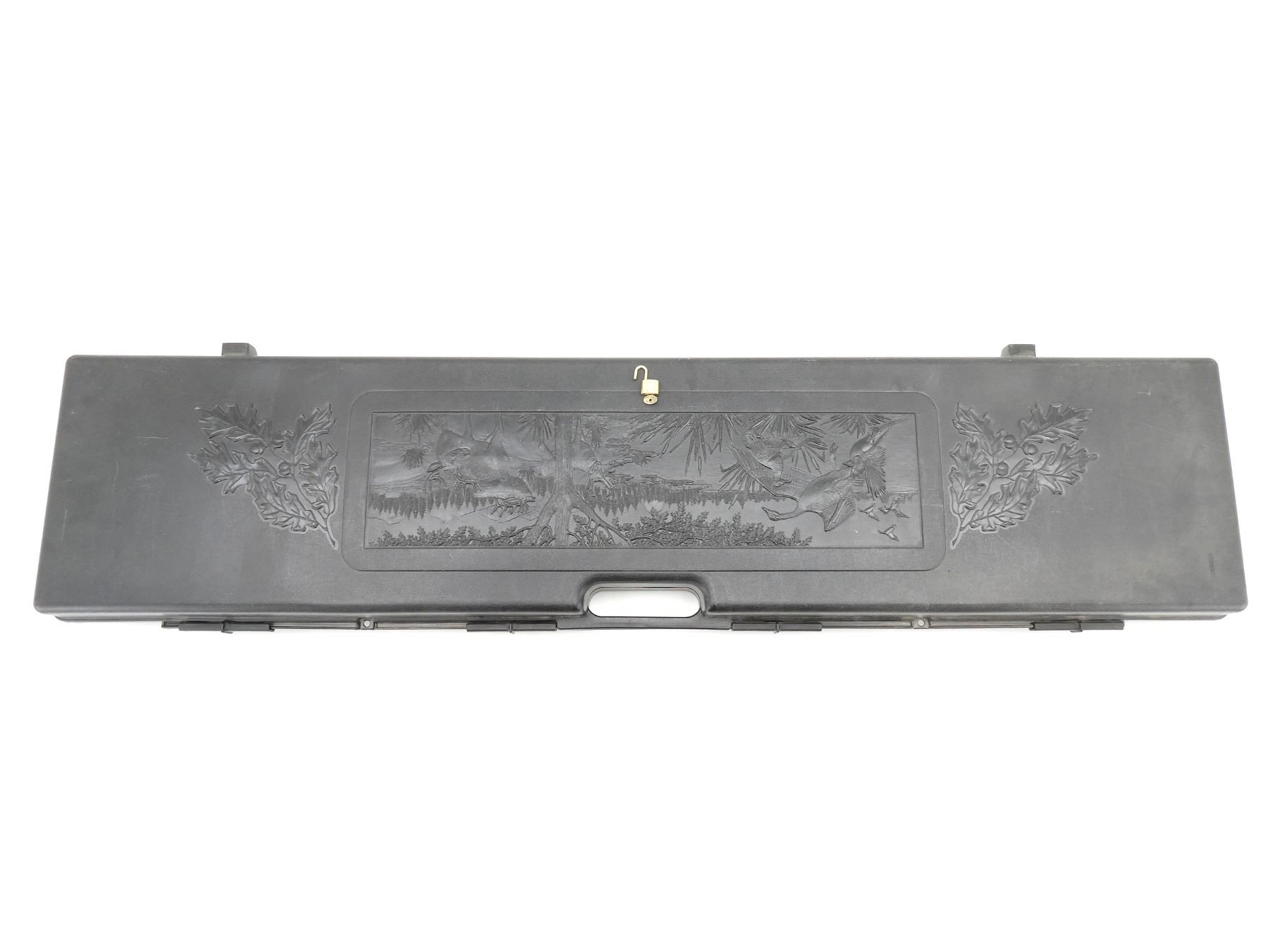 LOT INCLUDES; (1) BLACK HARD PADDED GUN CASE, CARRY HANDLE, (4) LATCHES, (1) KEY LOCK WITH KEY, APPROX. OAL 51", SHOWS WEAR AND TEAR FROM USAGE, SEE PHOTOS.