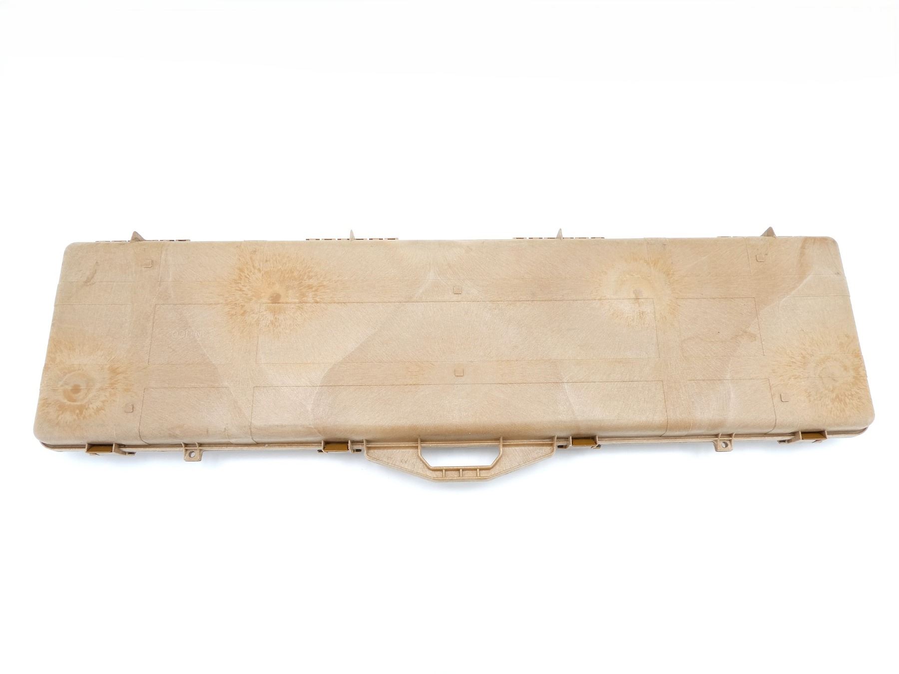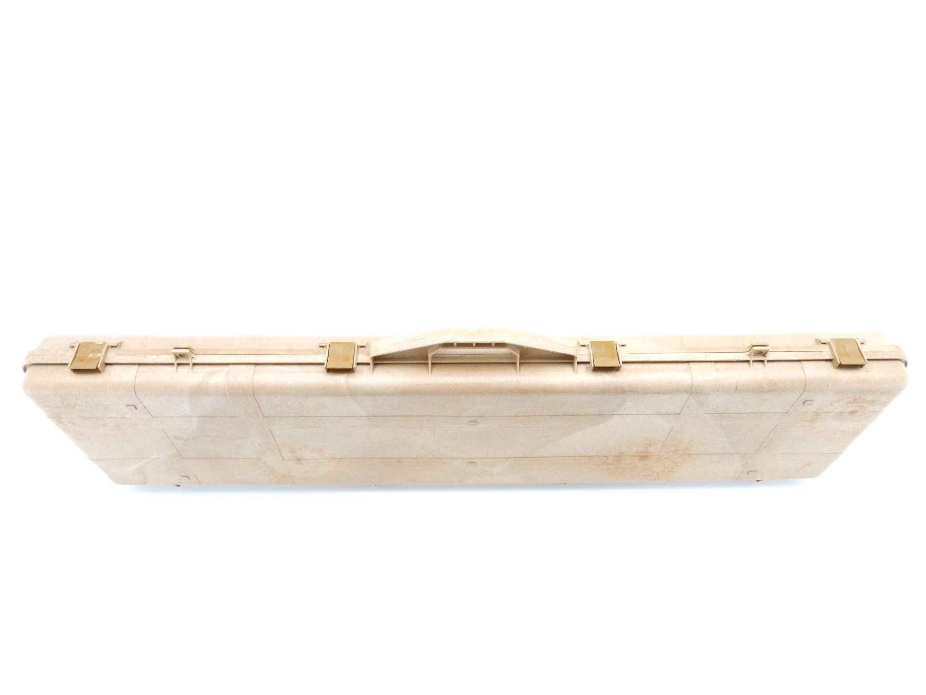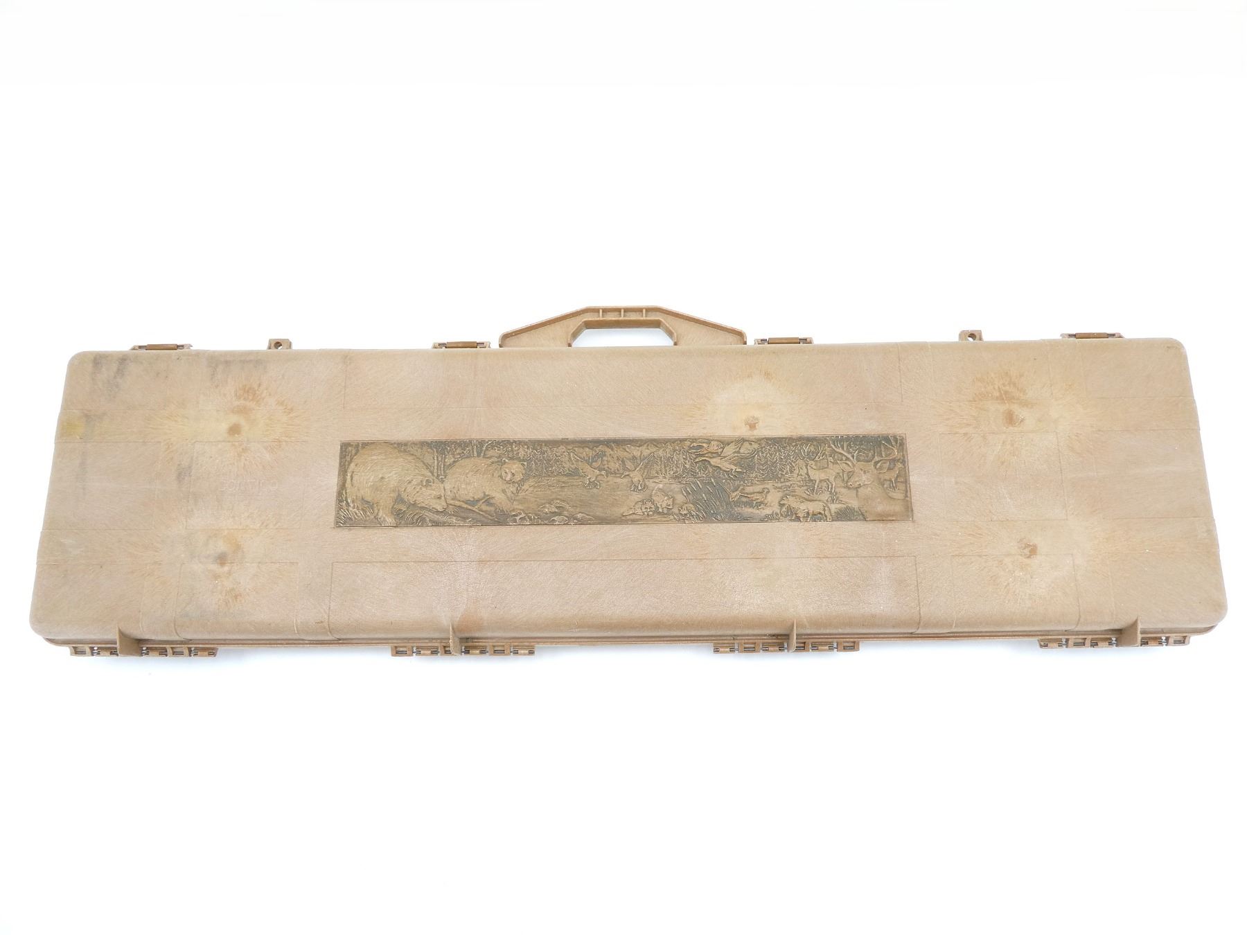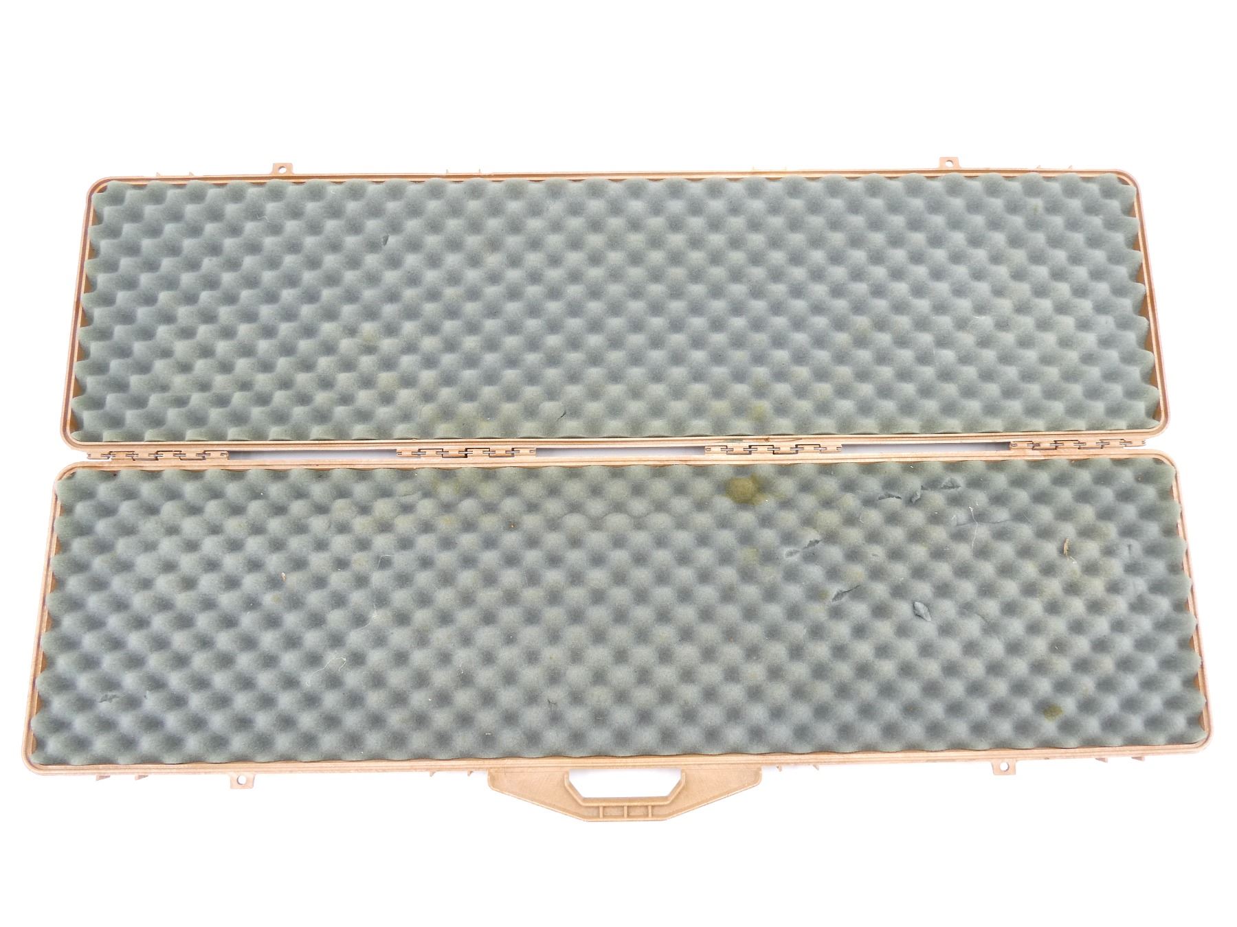 LOT INCLUDES; (1) TAN HARD PADDED GUN CASE, CARRY HANDLE, (4) LATCHES, APPROX. OAL 51", SHOWS WEAR AND TEAR FROM USAGE, SEE PHOTOS.