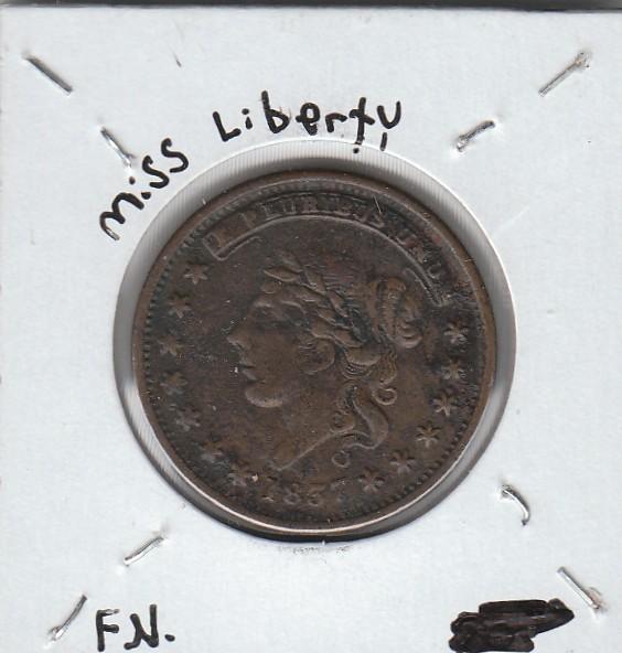HARD TIMES TOKEN CENTRE MARKET 1837 LIBERTY