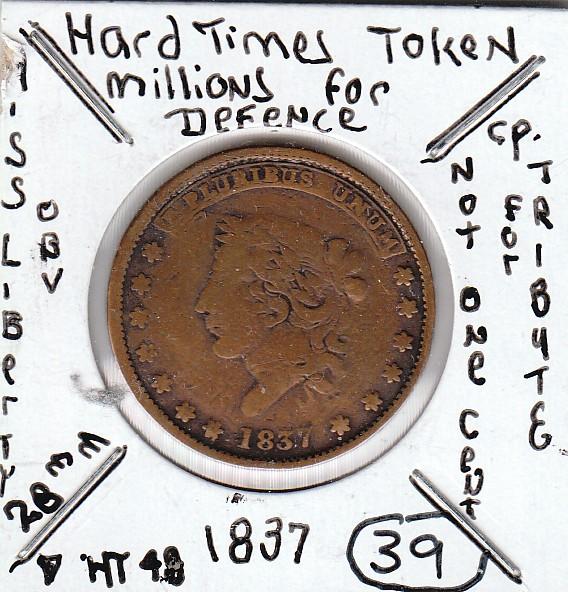 HARD TIMES TOKEN MILLIONS FOR DEFENSE 1837