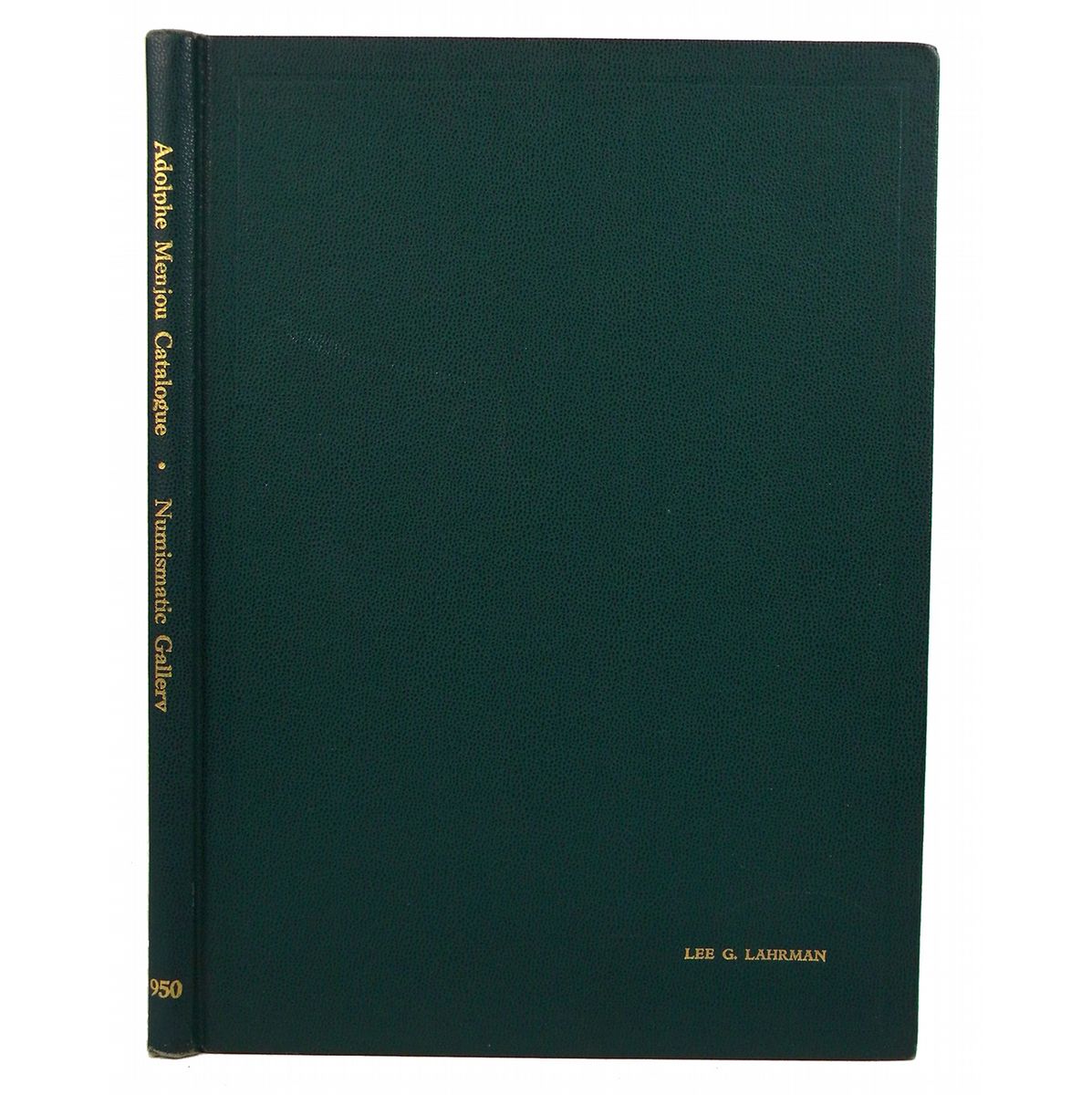 Kosoff, A., and Abner Kreisberg [Numismatic Gallery]. THE ADOLPHE MENJOU CATALOGUE. UNITED STATES COINS. Beverly Hills, June 15–20, 1950. 4to, original green cloth, gilt. (10) pages, blank leaf, 8–133 pages; 2746 lots; text illustrations; portrait; prices realized printed by each lot. Fine. The Special Library Edition. No. 62 of 300 copies, with LEE G. LAHRMAN stamped in gilt at the base of the upper cover. Though it bears the name of the urbane Hollywood actor, few of the coins in this important catalogue actually belonged to Menjou.