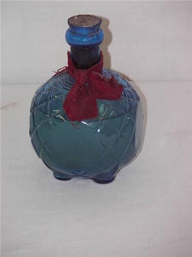 HARDEN #1 BLUE QUILTED FOOTED GLASS FIRE GRENADE W/ CONTENTS;