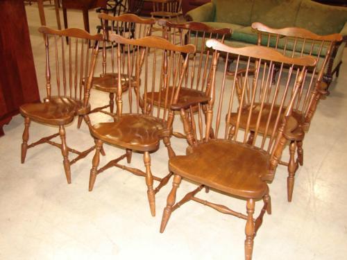SET OF 6 HARDEN CHERRY WINDSOR STYLE DINING CHAIRS. Consists of 2 arm chairs and 4 side chairs. Stamped on bottom “Solid Cherry/By Harden". 36.5" H to top of back.