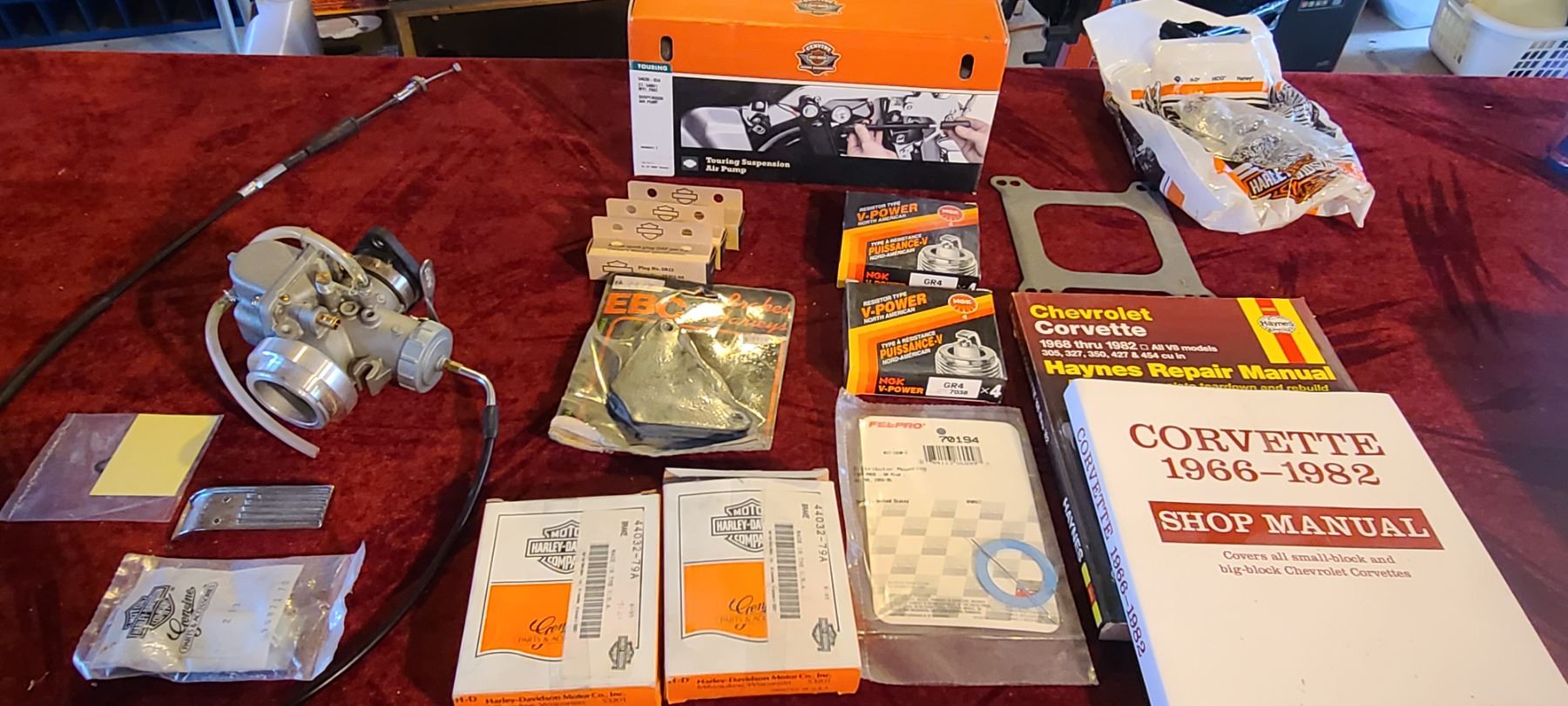 HARLEY DAVIDSON PARTS, CARBURATORS, SPARK PLUGS, AND CORVETTE RAPAIR MANUALS