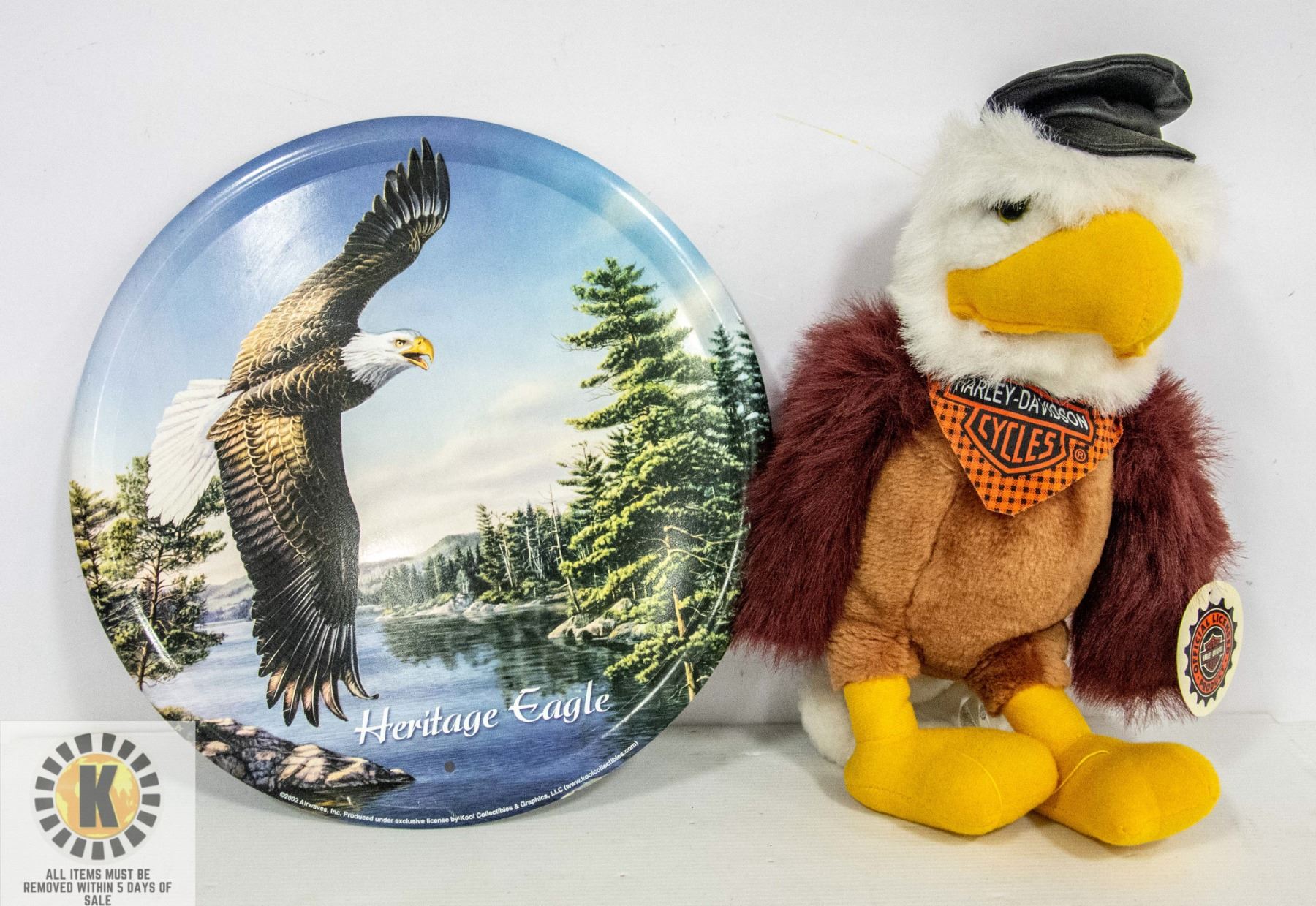 HARLEY DAVIDSON STUFFED EAGLE & METAL WALL HANGING