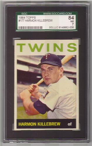 HARMON KILLEBREW 1964 TOPPS BASEBALL CARD. #177. Graded by SGC. 84. NM 7. 8149862-008.