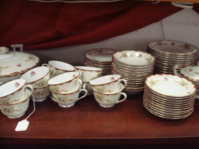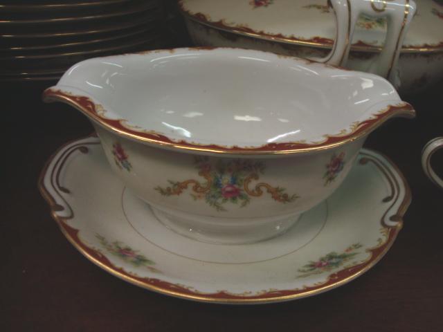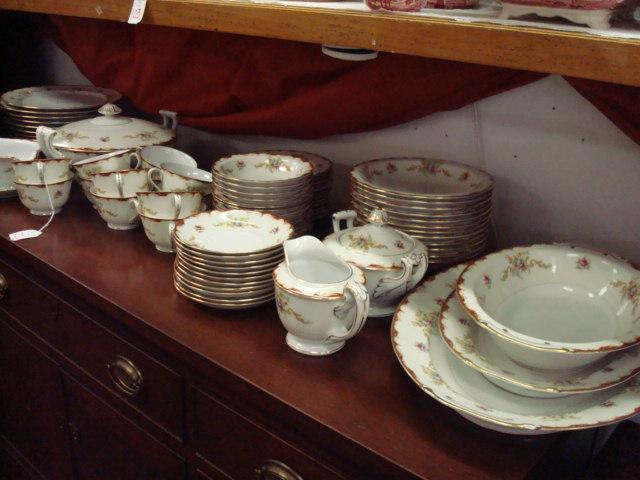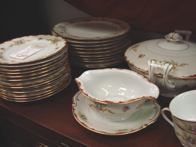 HARMONY HOUSE Wembley Dinnerware: 10 Dinner Plates, 13 Salad Plates, 12 Bread Plates, Fruit, and Soup Bowls, 11 Saucers, 12 Cups, Sugar, Creamer, Covered Vegetable Bowl, Open Vegetable, 2 Platters, Gravy. Some Chips. (100-200)