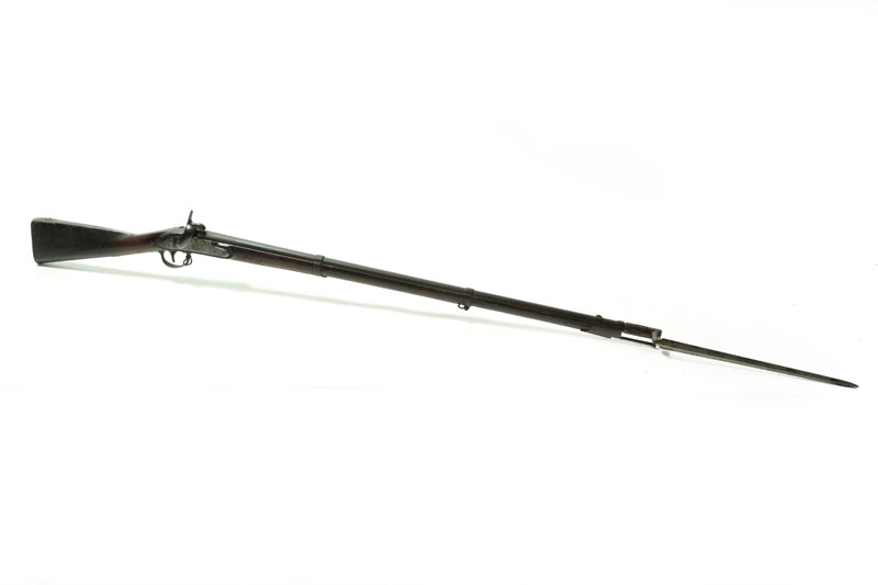 .69 caliber, 42" round barrel, dated 1832, walnut stock with cartouche, and original ramrod and bayonet.