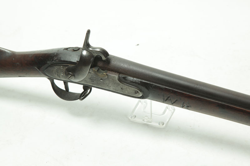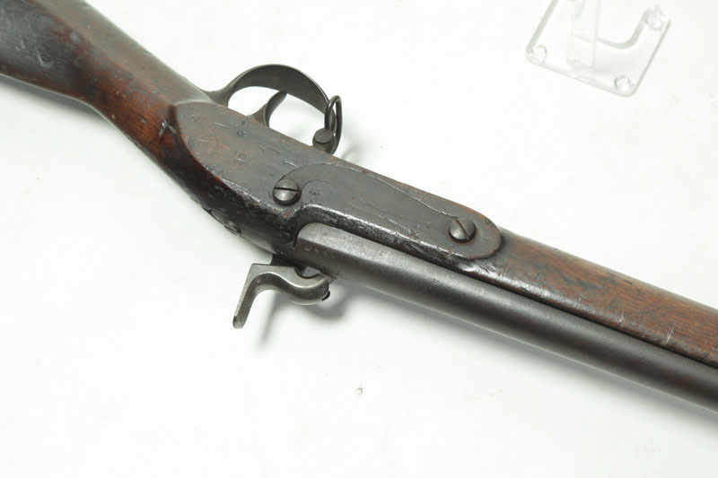 Condition: Old finish on stock with nicks, dings, and carved initials, some corrosion and pitting.
