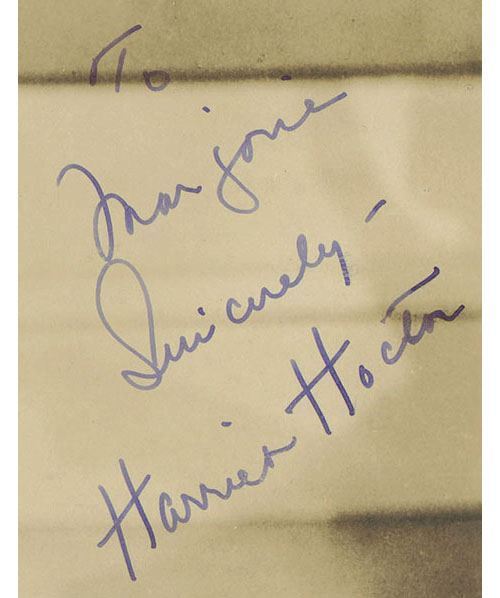 This is an original vintage signed photograph of Harriet Hoctor. Double weight, sepia matte finish with full borders and *hand signed* by Ms. Hoctor to Mary Jane. The owner believed this was Mary Jane Halsey who was also in the film 'The Great Ziegfeld' (1936) as one of the Glorified girls. It is circa 1930s, at the time she was in the Ziegfeld movie and the next year when she danced in 'Shall We Dance' with Fred Astaire. She appeared as herself in 'The Great Ziegfeld'. Composer George Gershwin composed a symphonic orchestral piece (Hoctor's Ballet) specifically for Hoctor in the film 'Shall We Dance' (1937) which starred Fred Astaire and Ginger Rogers. SIZE: 8" x 10".
