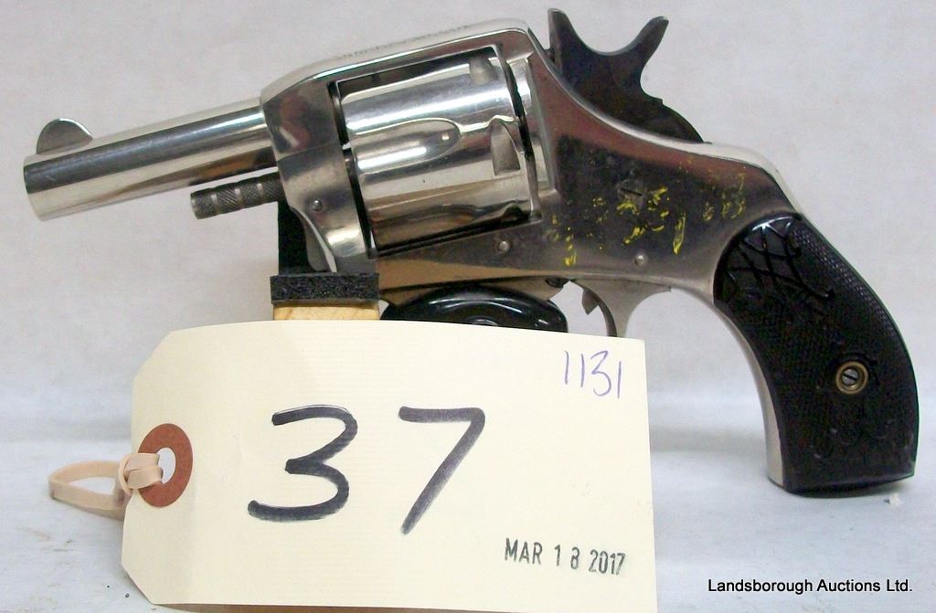 PROHIBITED, REVOLVER, 32 S&W, 64MM BARREL, SN 293. GRIPS VERY GOOD, NICKEL PLATING HAS SOME PIT MARKS, BORE PITTED.