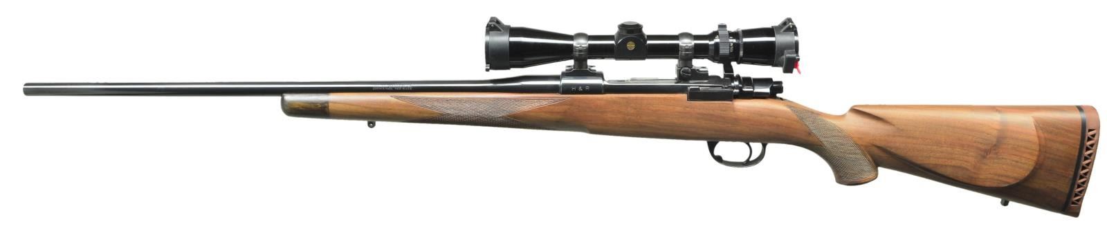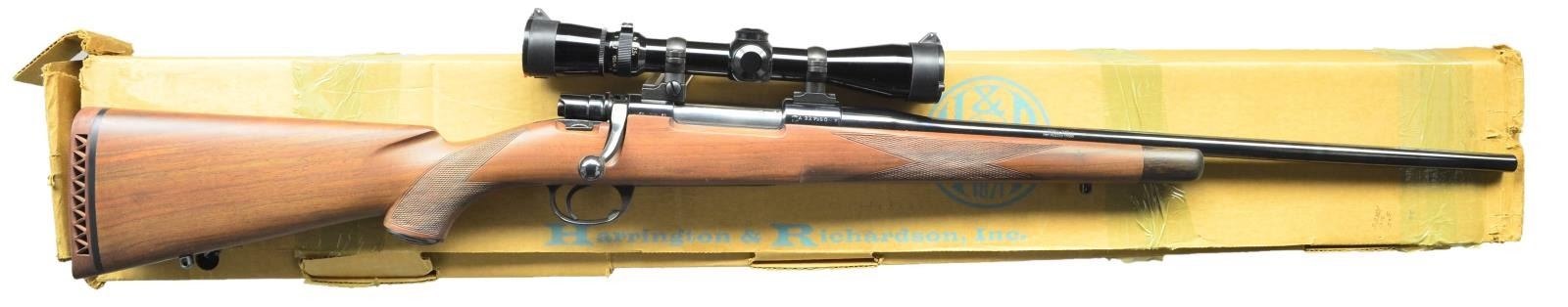 Cal. 7mm Mauser (7x57). S#A227450. Bbl. 22" light weight sporter profile. Rifle is equipped w/ Leupold 2.5-8x power scope. Scope has crosshair reticle w/ very good optics. Scope has Butler Creek caps. Commercial Mauser action w/ claw extractor, right side thumb safety, single stage trigger & hinged floorplate. Straight comb walnut sporter stock w/ shadow line cheekpiece. Original Supreme brown ventilated recoil pad. Bottom mounted sling studs w/ additional filled rear sling stud hole. UNATTACHED ACCESSORIES: factory box numbered to rifle & paperwork. CONDITION: walnut stock shows light handling marks. Metal retains 98% original blue. Near excellent bright bore. (22-3280/MJC). MODERN. $500-700.