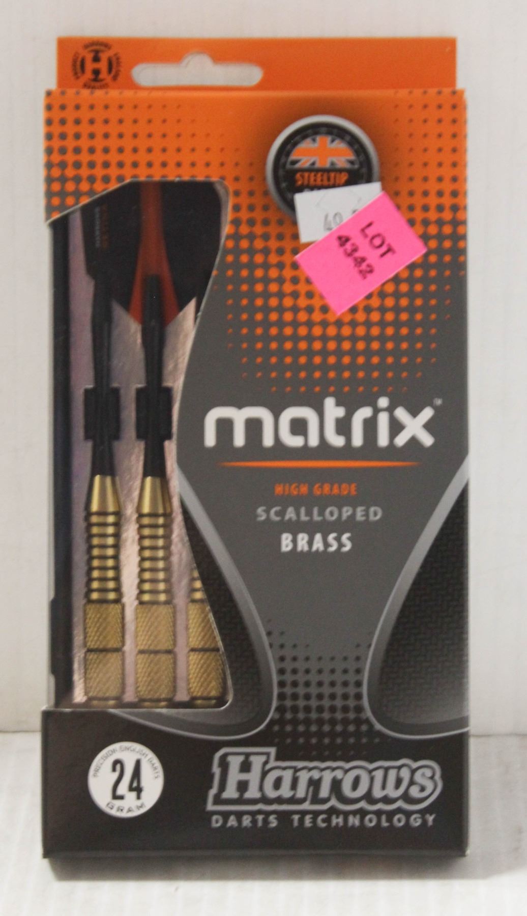 HARROWS MATRIX HIGH GRADE SCALLOPED BRASS 24 GRAM STEEL TIP DART SET