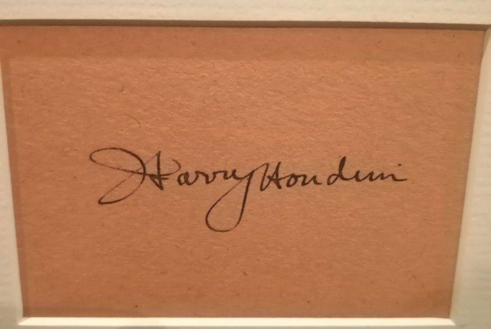 An autographed piece of paper from Harry Houdini, mounted and framed and supplied with coa. Harry Houdini was a Hungarian-born American illusionist and stunt performer, noted for his sensational escape acts. He first attracted notice in vaudeville in the US and then as "Harry 'Handcuff' Houdini" on a tour of Europe, where he challenged police forces to keep him locked up.