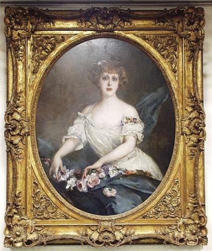 HARRY HUMPHREY MOORE (1844-1926) American school. A very fine oval shaped oil on canvas depicting a young woman. Signed. Framed in a magnificent gilt frame. 45" high, 35" wide. Painted in Paris, 1908. Moore, a prominent painter of French genre paintings lived and worked in France. He was a frequent exhibitor at the 19th century Paris Salons. Reference: Benezit, volume 6, page 200. 25000-30000