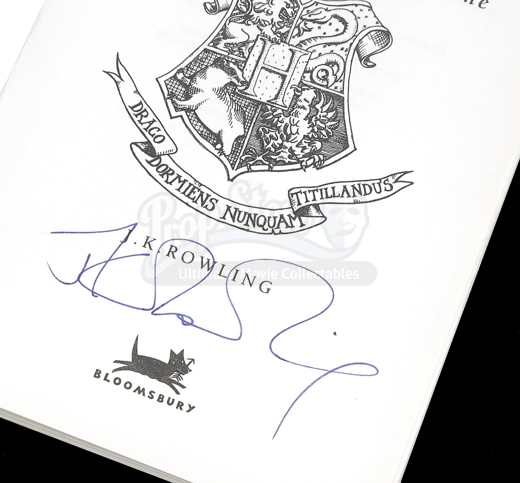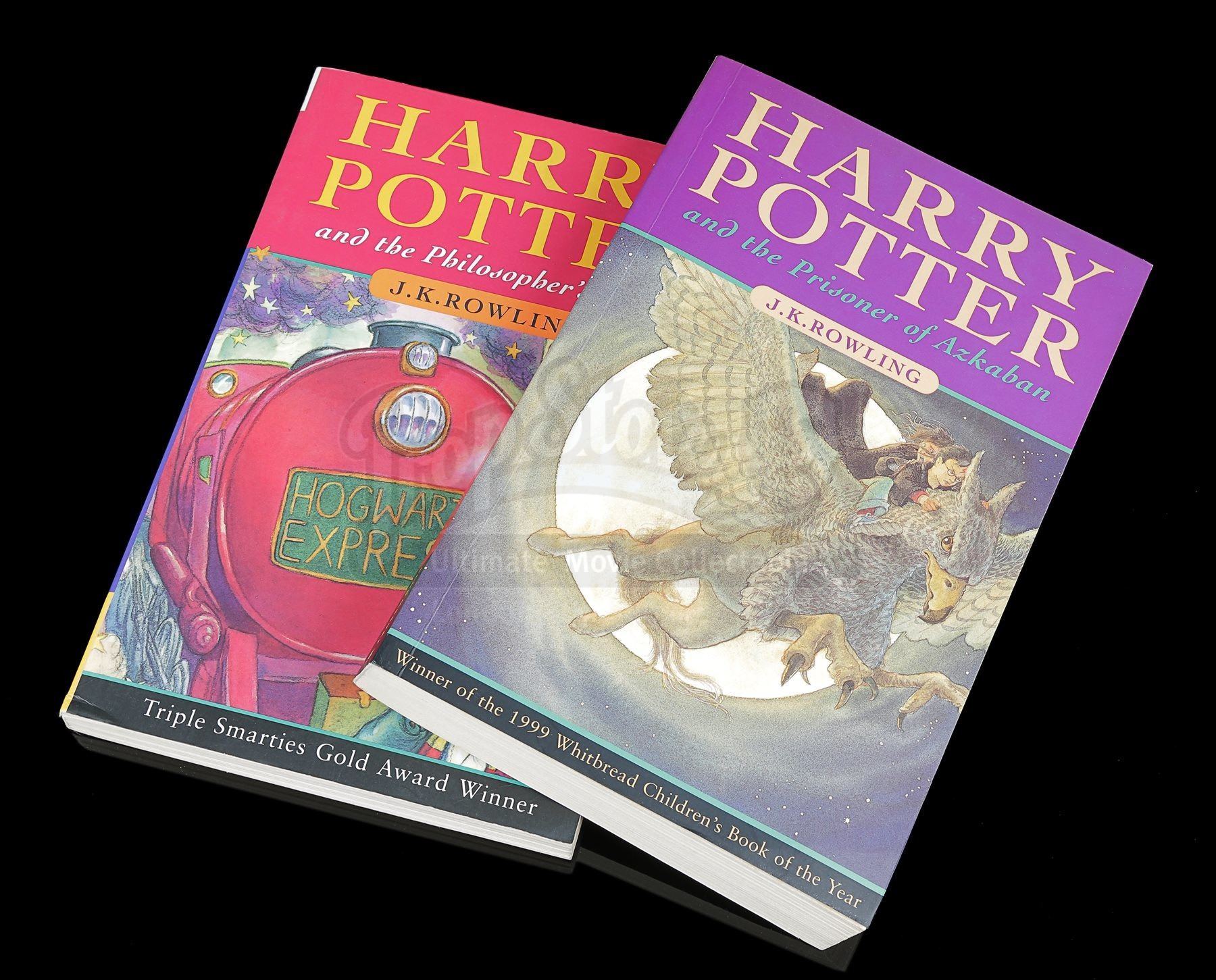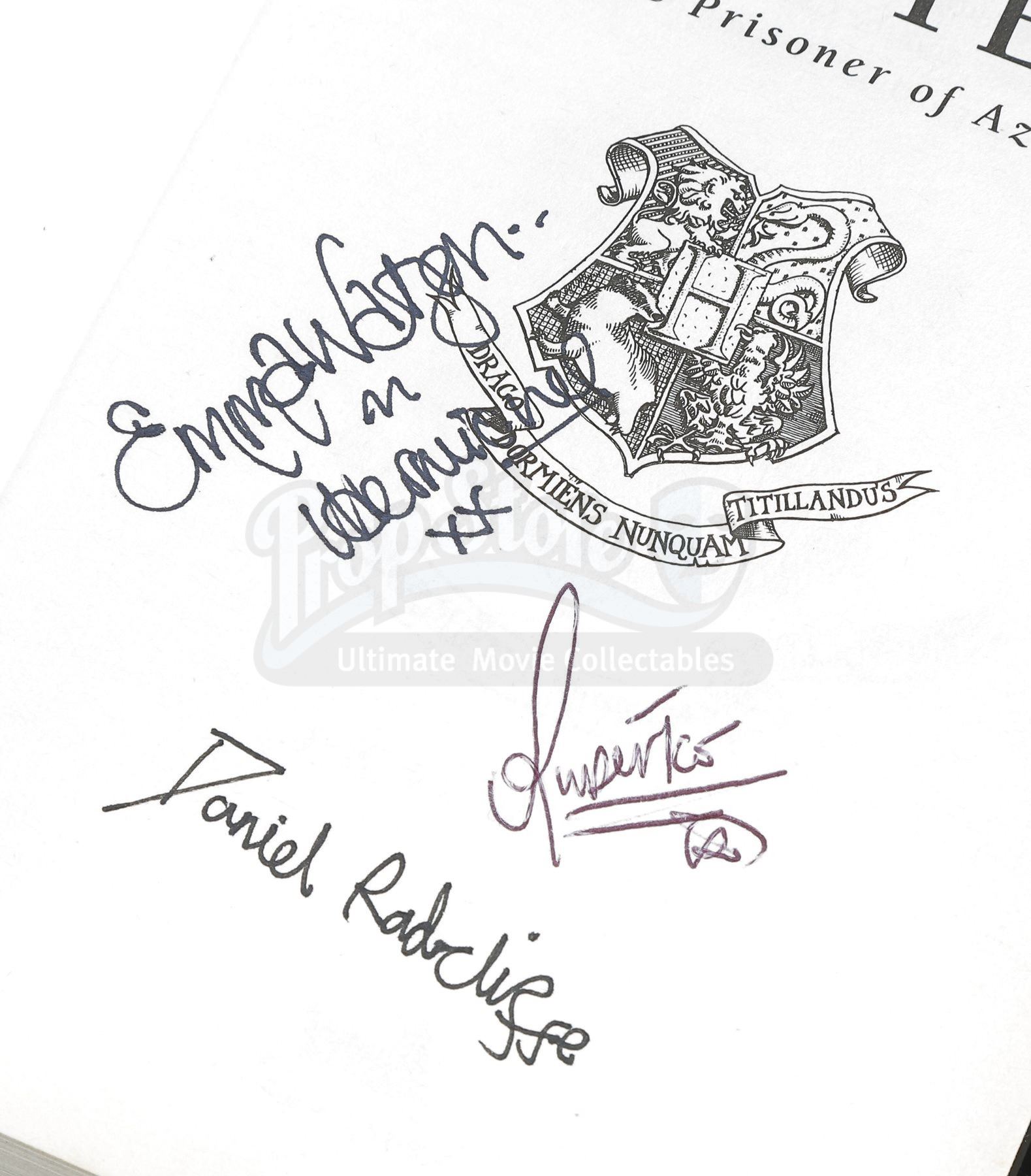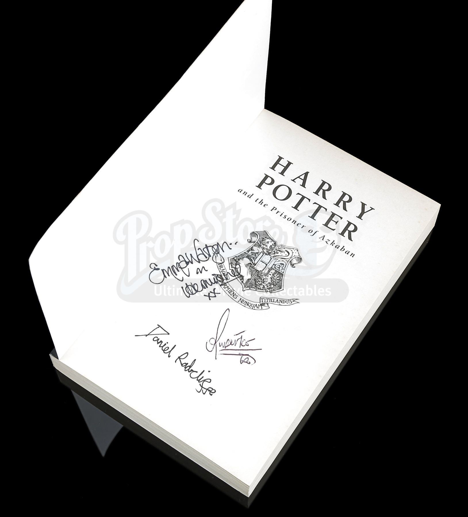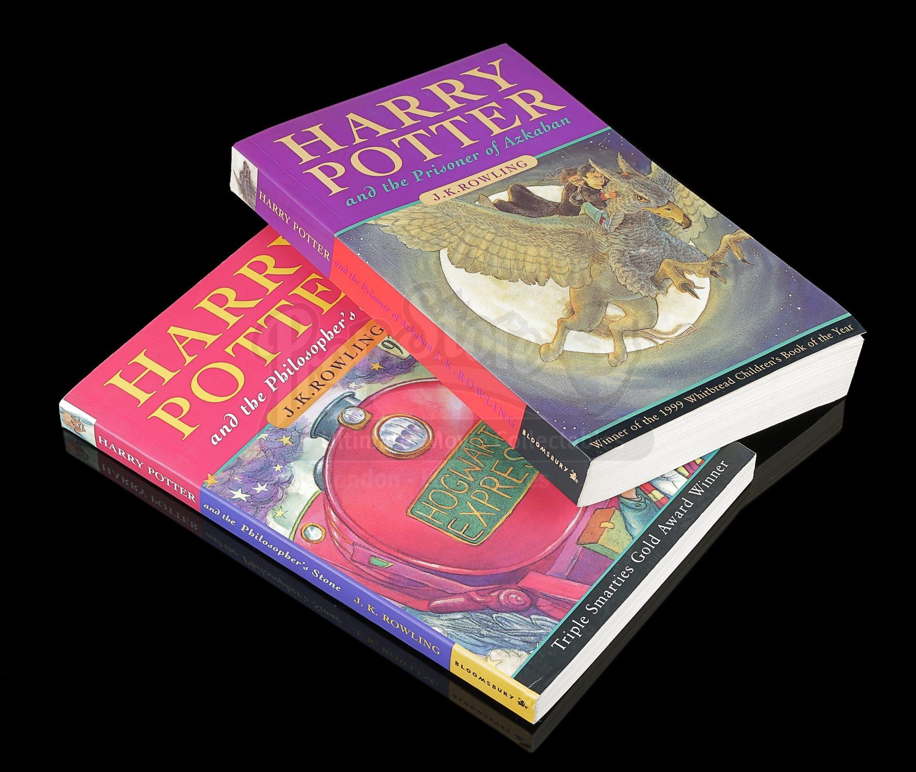 A copy of Harry Potter and the Philosopher’s Stone, autographed by author J.K. Rowling, and a copy of Harry Potter and the Prisoner of Azkaban, autographed by the three lead actors from the Harry Potter film series.