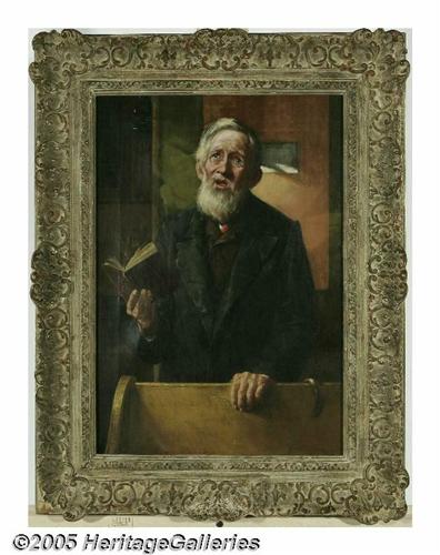 <B>HARRY ROSELAND (American </B></I><BR>Signing a Hymn<BR>Oil on canvas<BR>20in. x 14in.<BR>Signed lower right<BR><BR>Condition report: Unlined original canvas, small tear upper left patched with no significant inpainting<BR>
